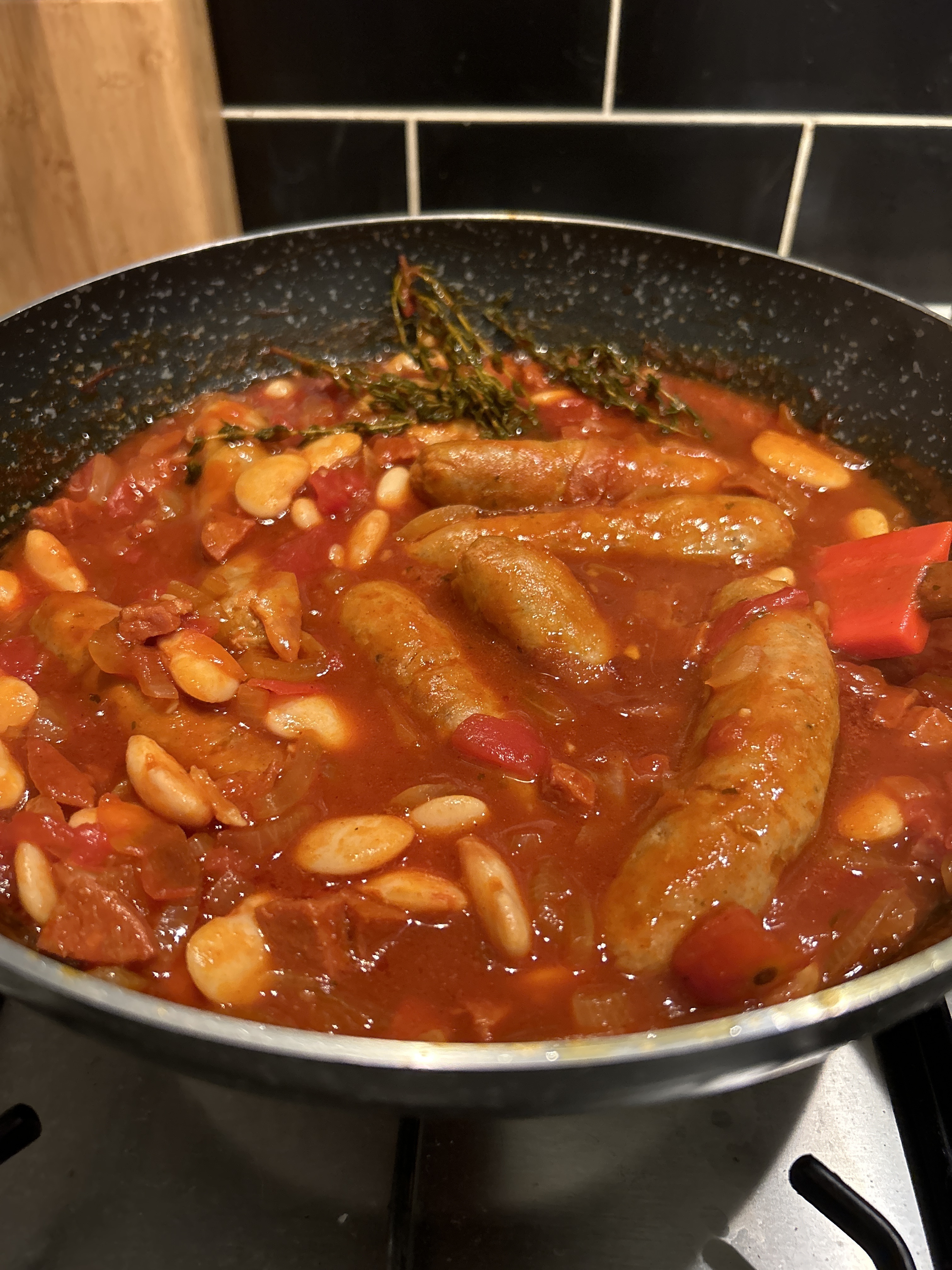 Stick some linguine on to boil. Start to fry some garlic in a butter and oil mix, once it sizzles add the asparagus (sliced at a fancy angle). Soon as it starts to fry add a couple tablespoons of the pasta water and about a quarter a glass of white wine. Turn the heat right down and cover. Leave like that til the pasta is ready. Add Italian hard cheese (or vegan equivalent - Nurishh Gran Vegiano in our house) and serve.