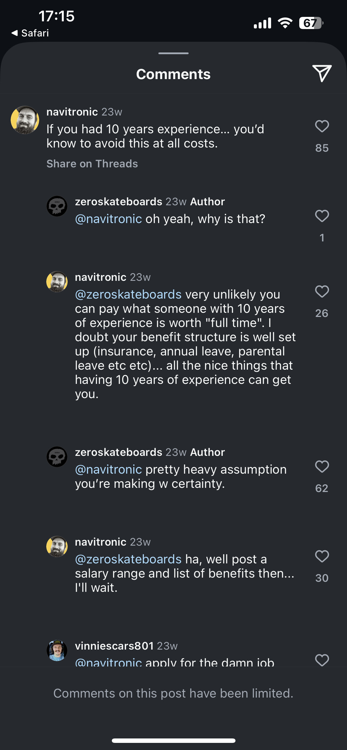 Zero posted looking for an art director with 10 years of experience on insta and I left a catty comment about them having no possibility of paying someone with that much experience what they’re worth and Jamie got all up in arms and then turned off the ability to comment so I couldn’t even reply.