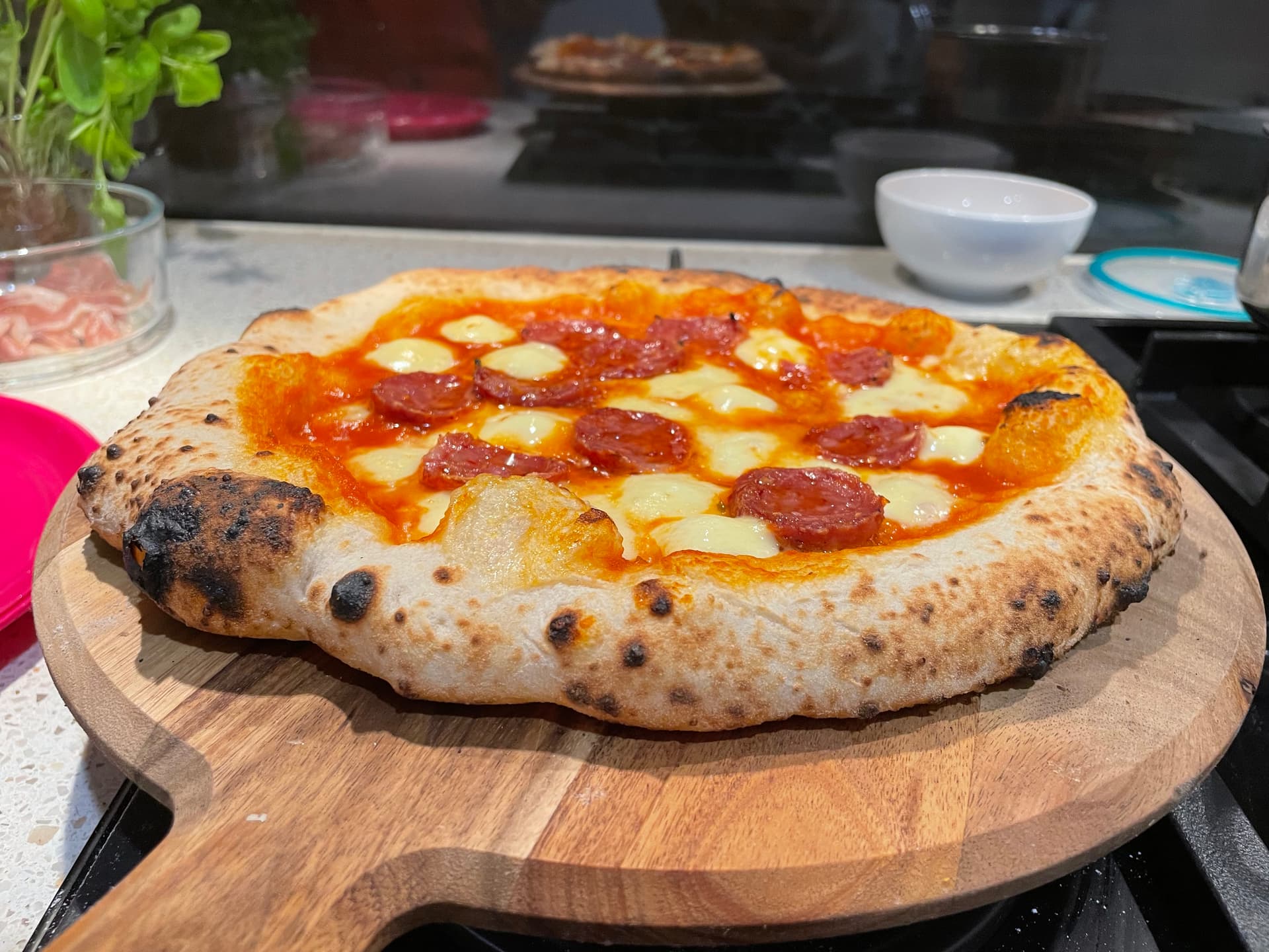 Come away to a camp site for a weekend and they’ve got a Roccbox knocking out really good pizzas on site. The dough was amazing…turns out she buys it in frozen in pucks for £14 a box of 60. As much as I love fucking about with dough, it’s tempting even though that’s like getting the shop to grip your board.
