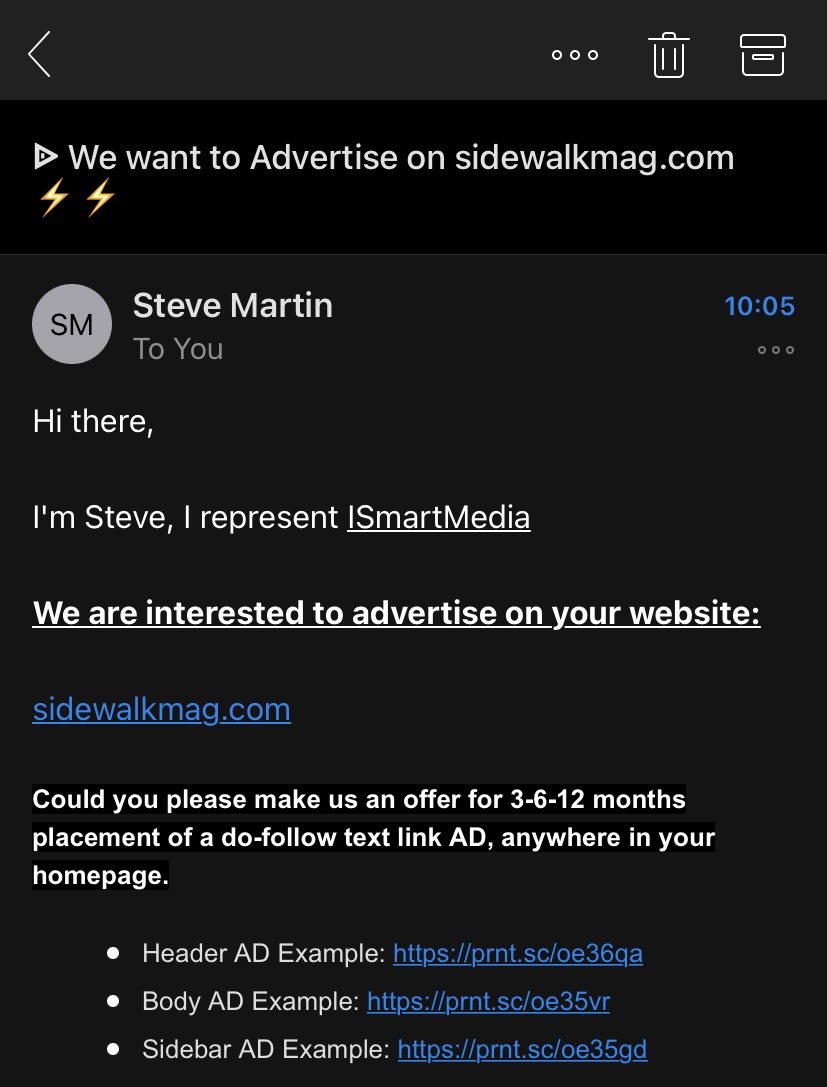 I know you don’t know the difference between a fakie front board and a nollie lip slide, but you know what, Steve, I might just sell you my sidewalk website if you promote my new clothing endevour, you can find us at Yellask8wear.com