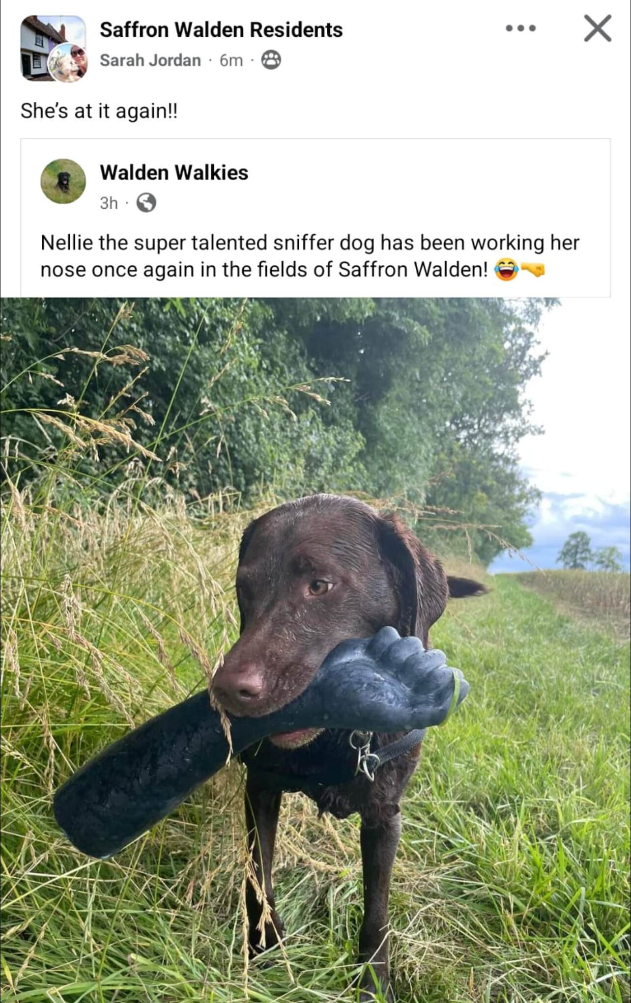 A dog in our village keeps finding dildos when out on walks. Happening so frequently that someone’s started a Facebook page to get all the photos and make a calendar.