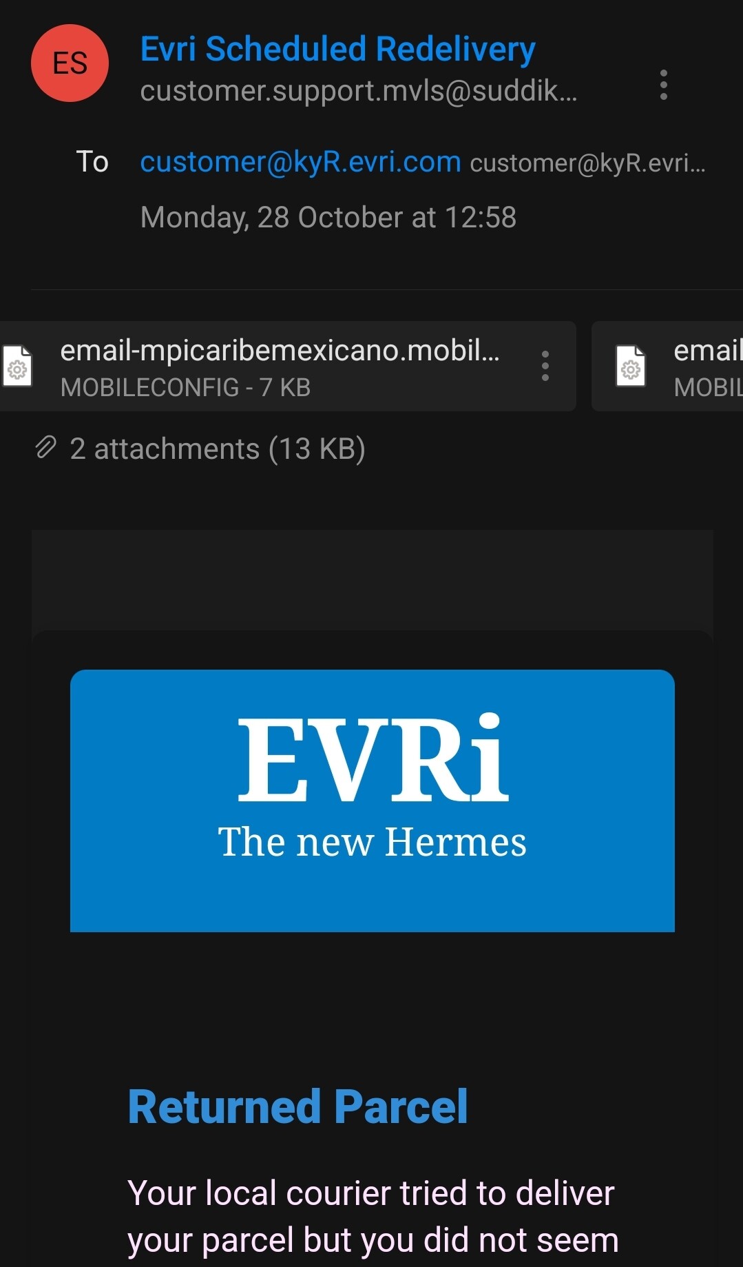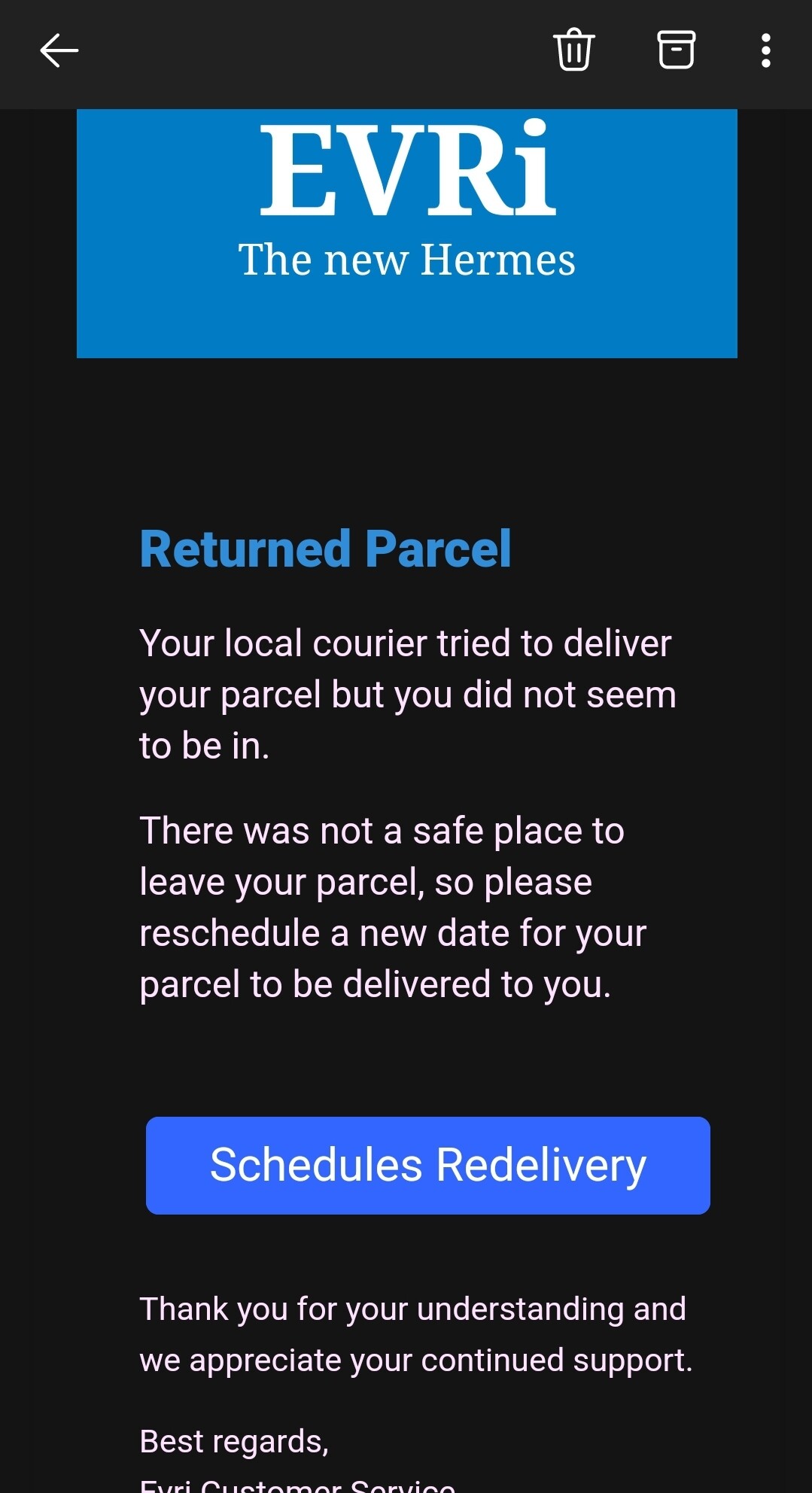 I had an email from RM saying delivery slot was going to be until 12.58. Around that exact time I had an email from ‘Evri’ saying they failed to deliver.