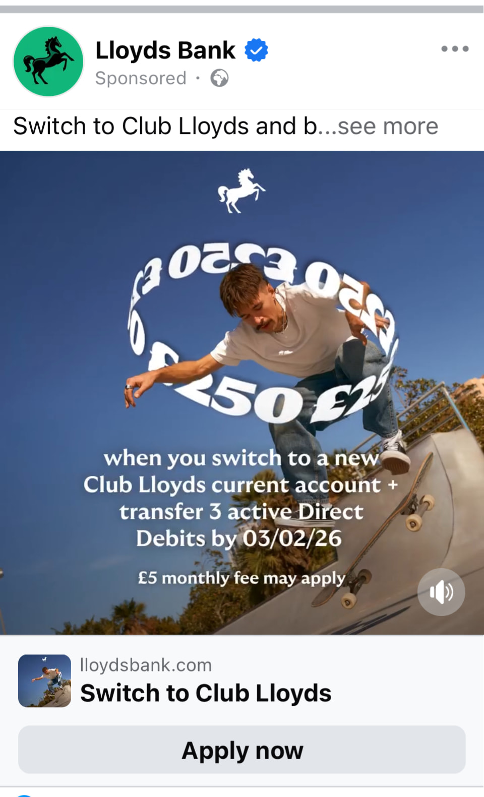 Some ‘targeted advertising’ from Lloyds. Not sure some bloke with a questionable moustache doing who knows what trick is enough to get me to switch accounts.
