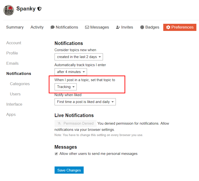 Also you can change your preferences by clicking your avatar (top right), then preferences (little cog) and going to ‘Notifications’ in left hand bar, NOT at the top.