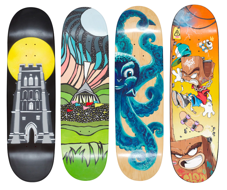 To help get us over the line, we’ve launched a one-off Art on Decks auction featuring 40+ unique, artist-designed skateboard decks — including work by Cheo, Rowdy, Glastonbury Festival artists, and loads of other brilliant local and national artists.
