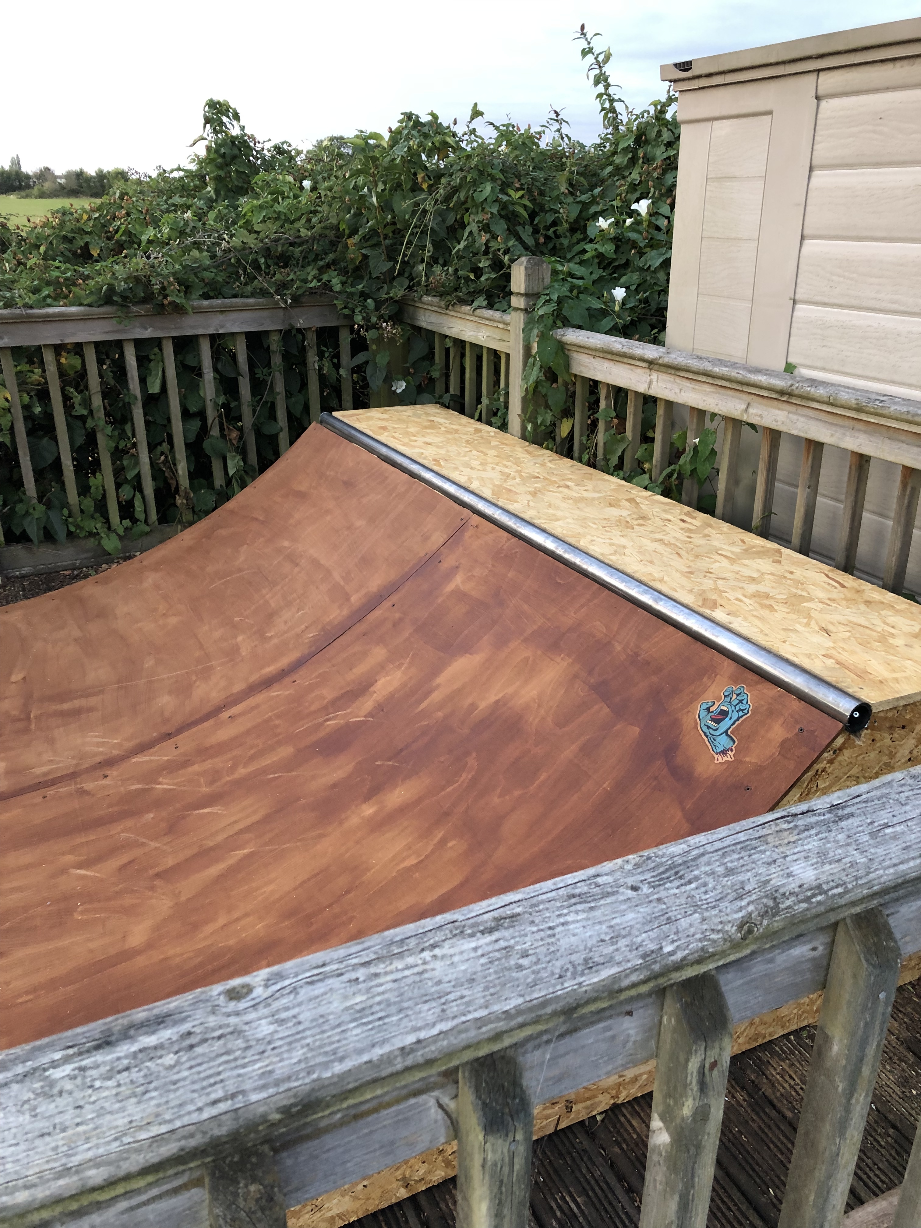 Well I made the ramp, with some creativity for £300. I took the view ramps I made years ago are probably still kicking about somewhere and we made those out of whatever we could find. 4 sheets of skatelite work out to be more than twice my total build cost. No doubt good stuff ‘but’ if I can find a way to make the top layer last a year I could replace every year for the next 5yrs - 2.5 with marine. So I’ve experimented with wickes decking stain. Cheap in the clearance - £11. Put some on, let it dry, skated it and found no difference in grip. Will be schlacking on another coat once I’m happy it’s not an ice rink. Got a tarp that I’m going to cover it with (but as suggested not tight to the ramp) so to try and keep the worst of the rain off it. My plan is to see how it holds up so I’ll report on any crap decisions just in case anyone else attempts a budget ramp build.