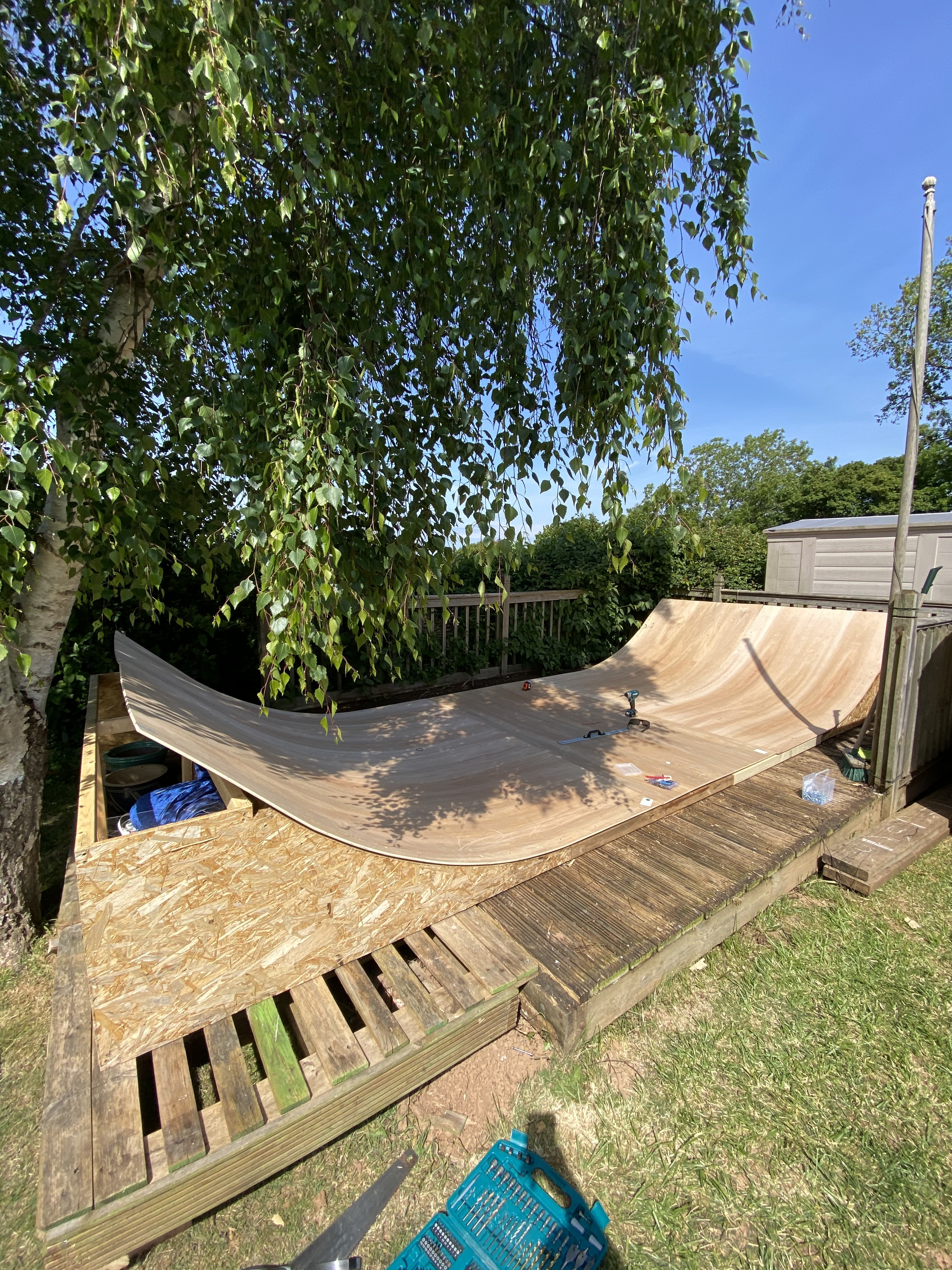 I plyād it vertical as I figured itād be easier to bend that way. I think the internal veneers are long as well? Travelling the length not width of the boards. Might be wrong on that but figured if I laid it with the other way the veneers might be short in width and split?? As itās now got more flat I started with that piece. Made sure it was as straight and right angled to the edge as I could get it and then could use it to butt the vertical pieces against. I then started screwing down the transition boards from the flat and worked my way up to the coping. As long as that flat section board was straight I could get a nice seam between the boards. I was thinking about skinning it on a 45degree angle but I think something like thatād be outside my skill set. Be covering the whole thing in wood stain next but figured, as the weather is good, going to enjoy the fresh wood smell and ride it with my lad for a day (or two) first.