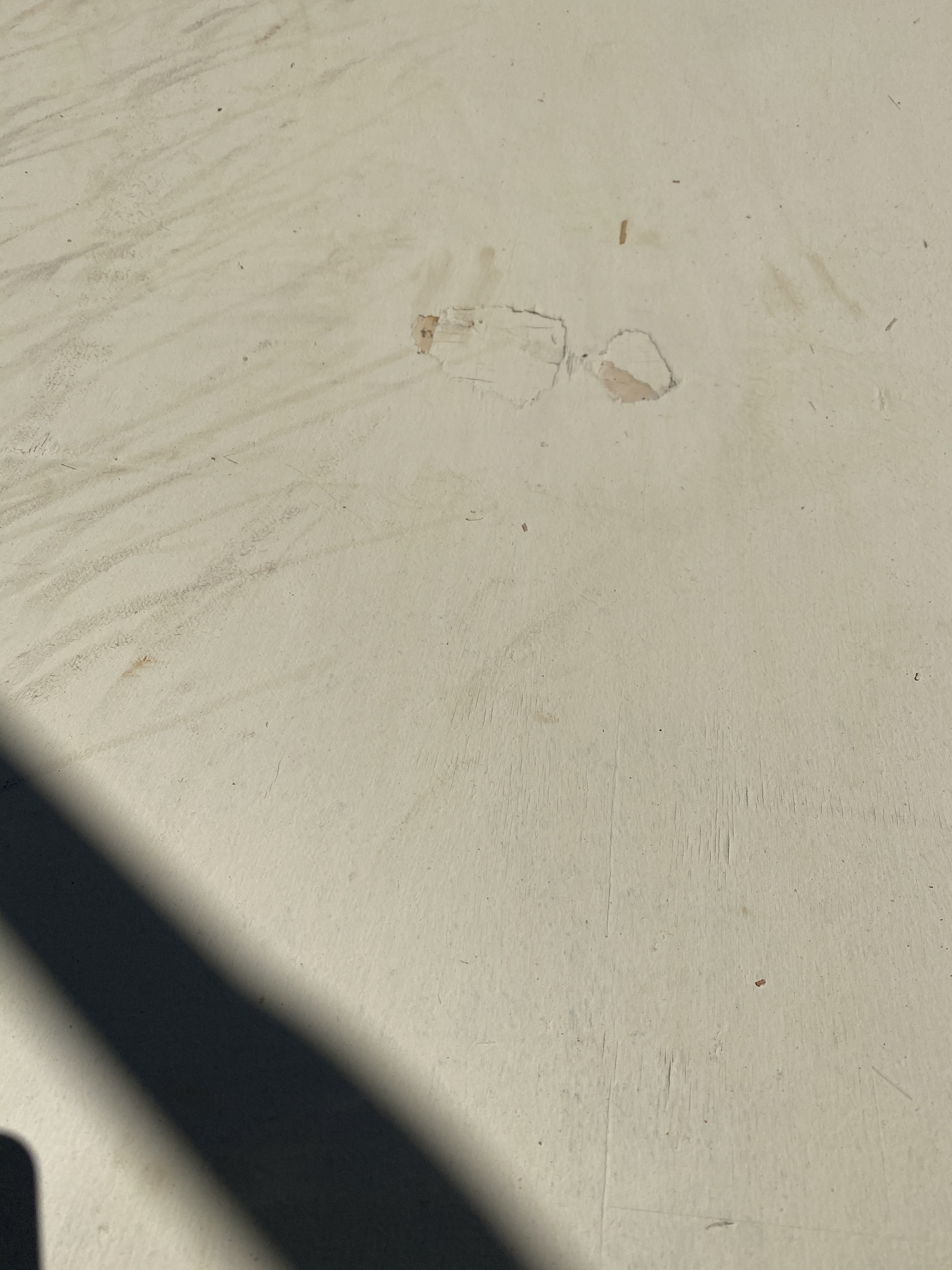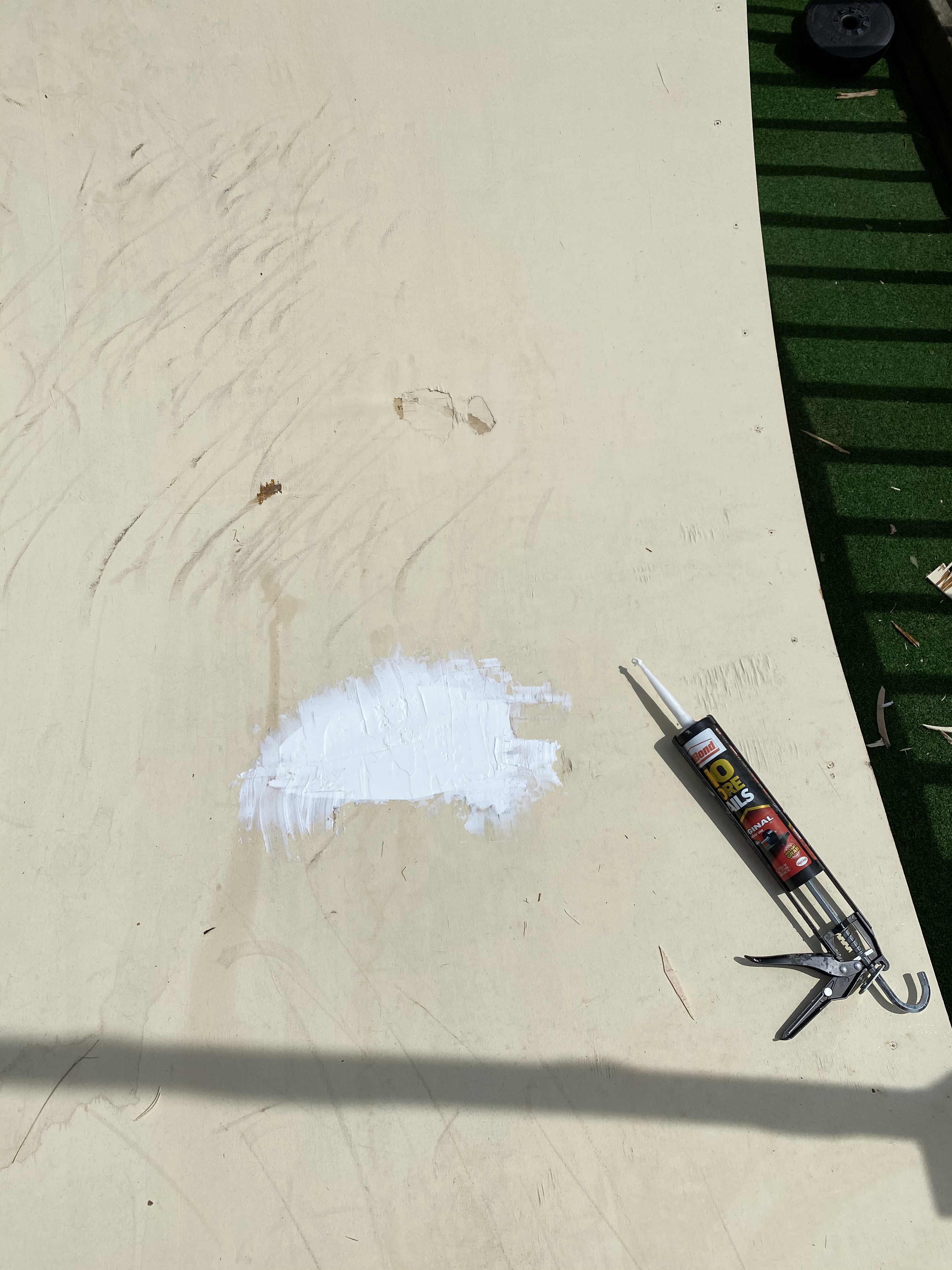 Hmmm… so the wpb board is good’ish. Now I don’t know if it’s because we’ve had some serious heat or whether one piece is a bit shonky ‘but’ one de-lammed… so I cut out the bit that blistered and filled with no-nails…