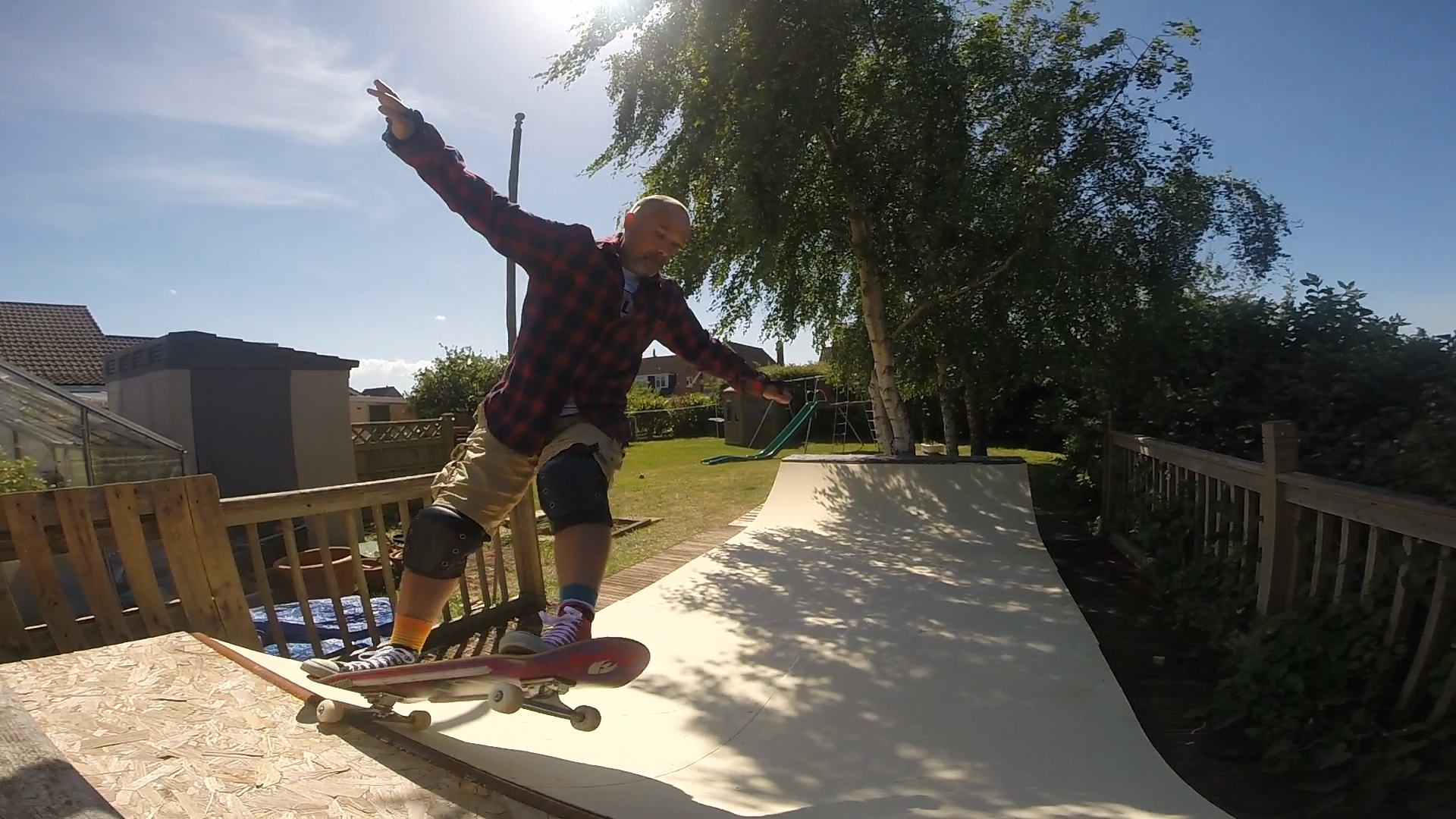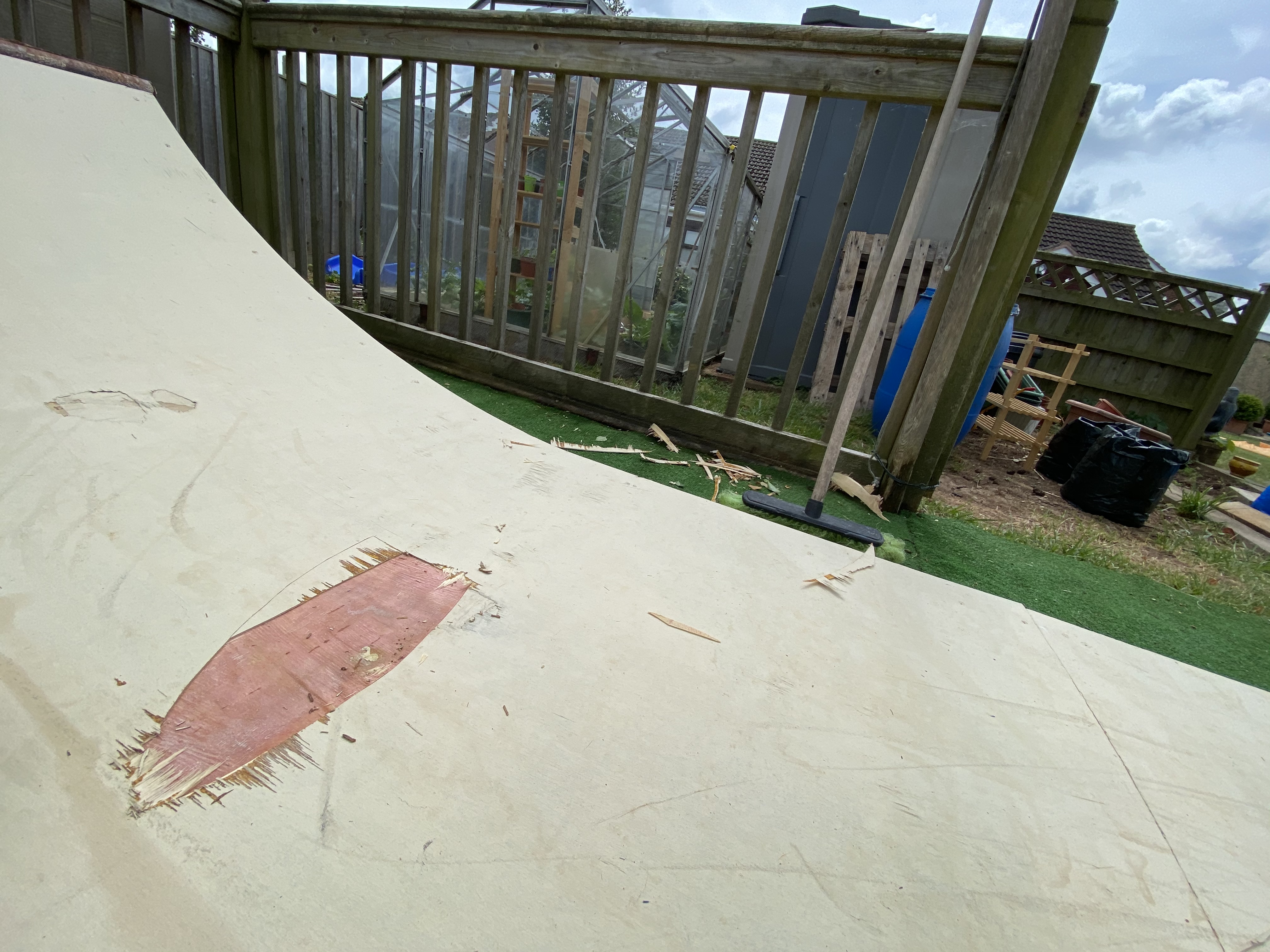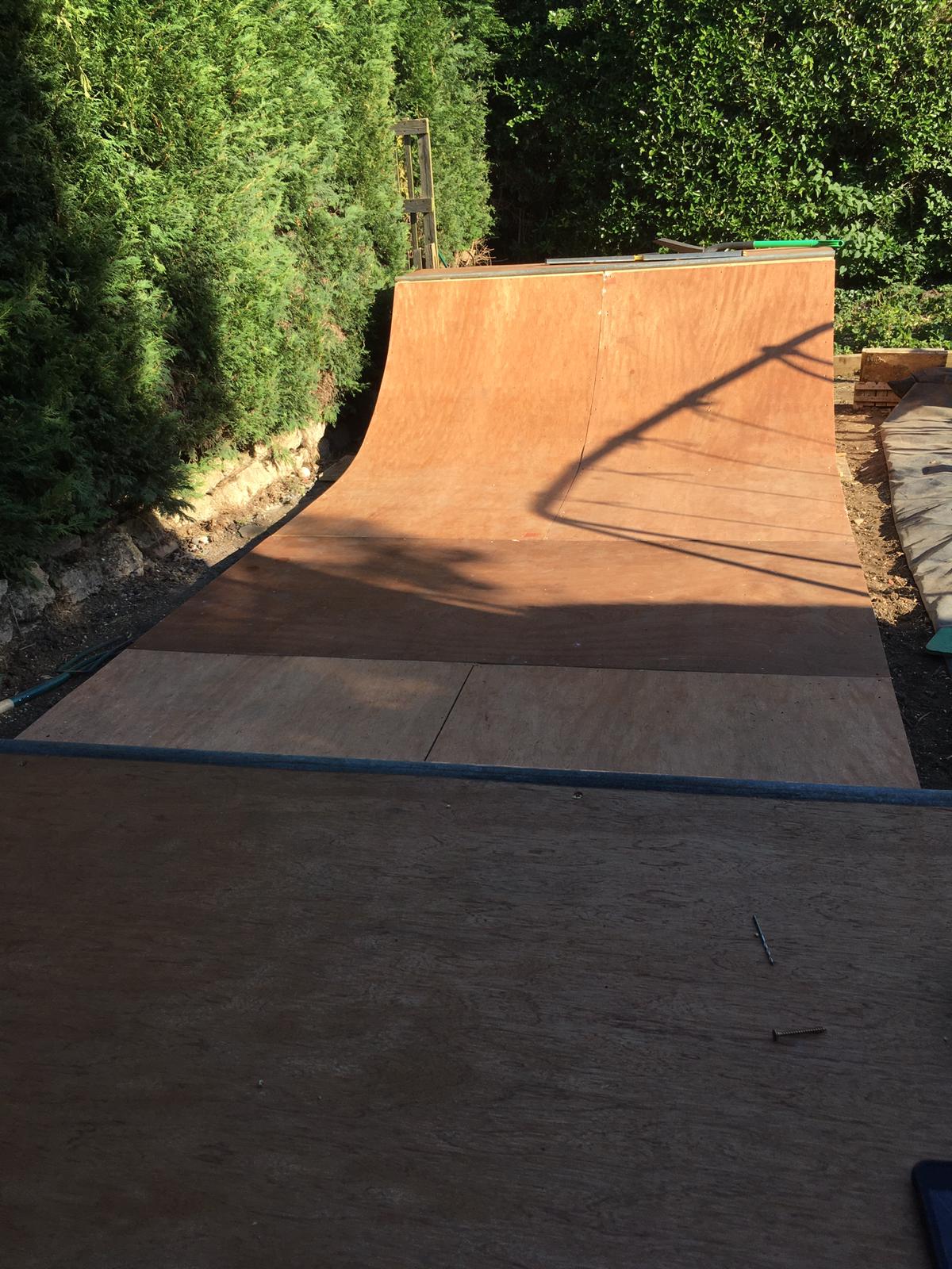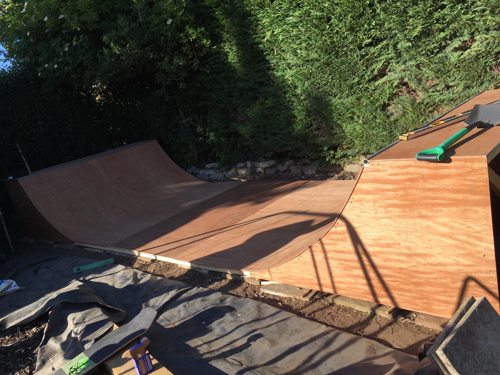 Iam in a similar position to you in many ways, 45, should know better, not skated in 20 yrs, recently rekindled my fondness for skating, amazingly with encouragement from my wife ended up with this in my garden, again luck enough to have plenty of room at the back for it, now then, I am having to overboard as currently only 1 layer of ply, from your previous experience and from the comments/advice do I just go for the marine ply or do I treat the structural ply I have and use that? I have also tarp’d Will take your tip of pallets for air flow