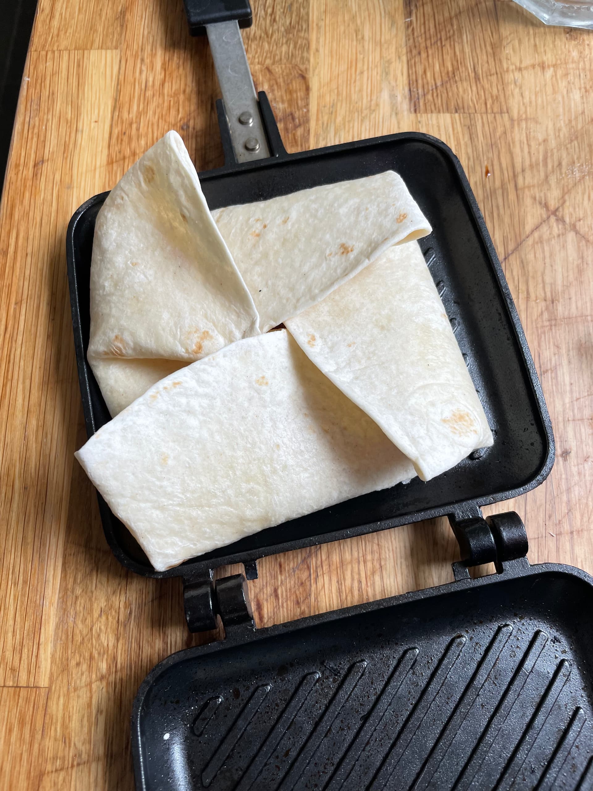 Well advise getting one of these toastie makers you put on the hob, I use it for elaborate folded wraps.
