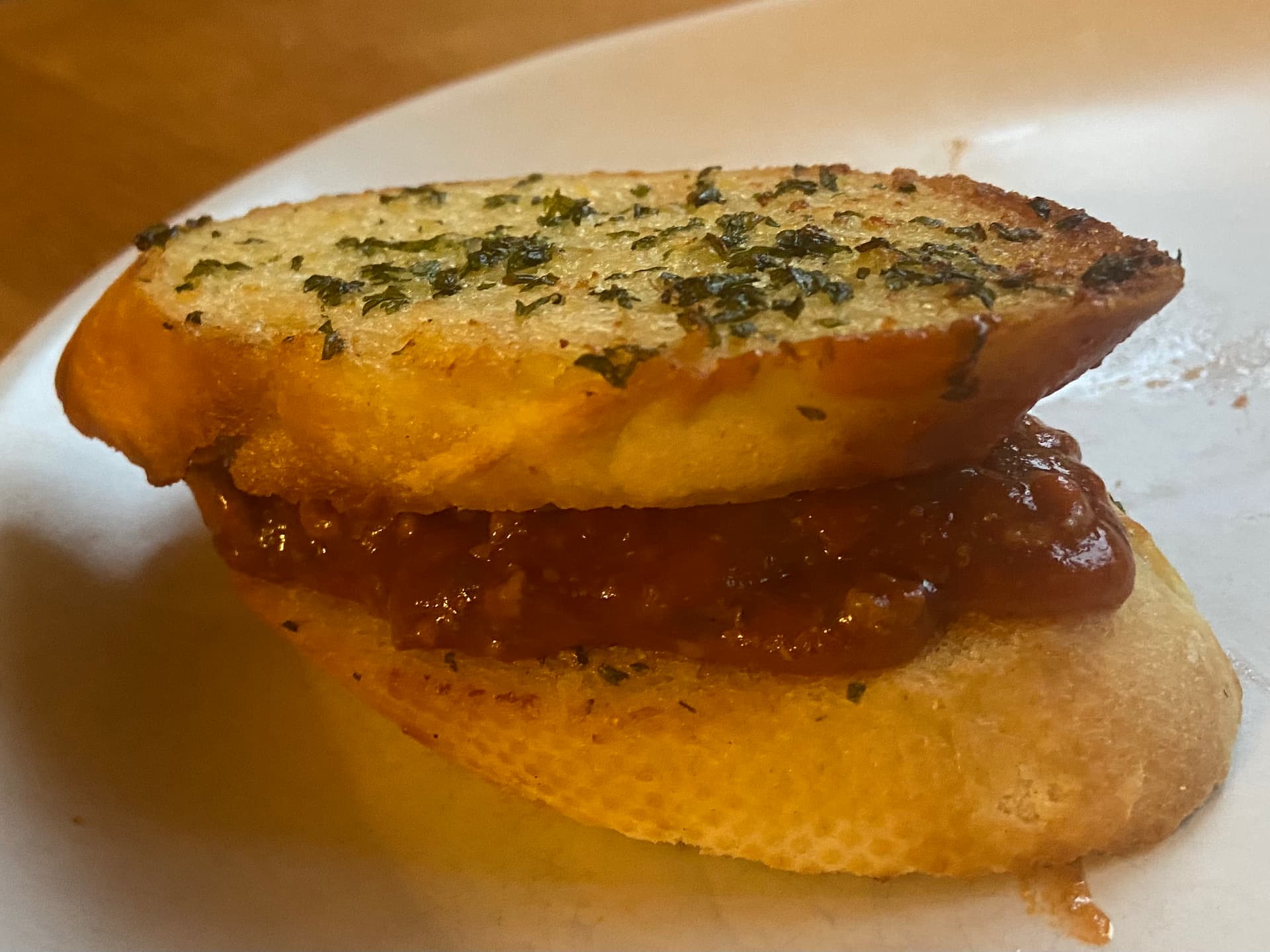 Think you need a softer bread to compliment the bolognese. Bet that’d be killer with fried bread or eggy bread!