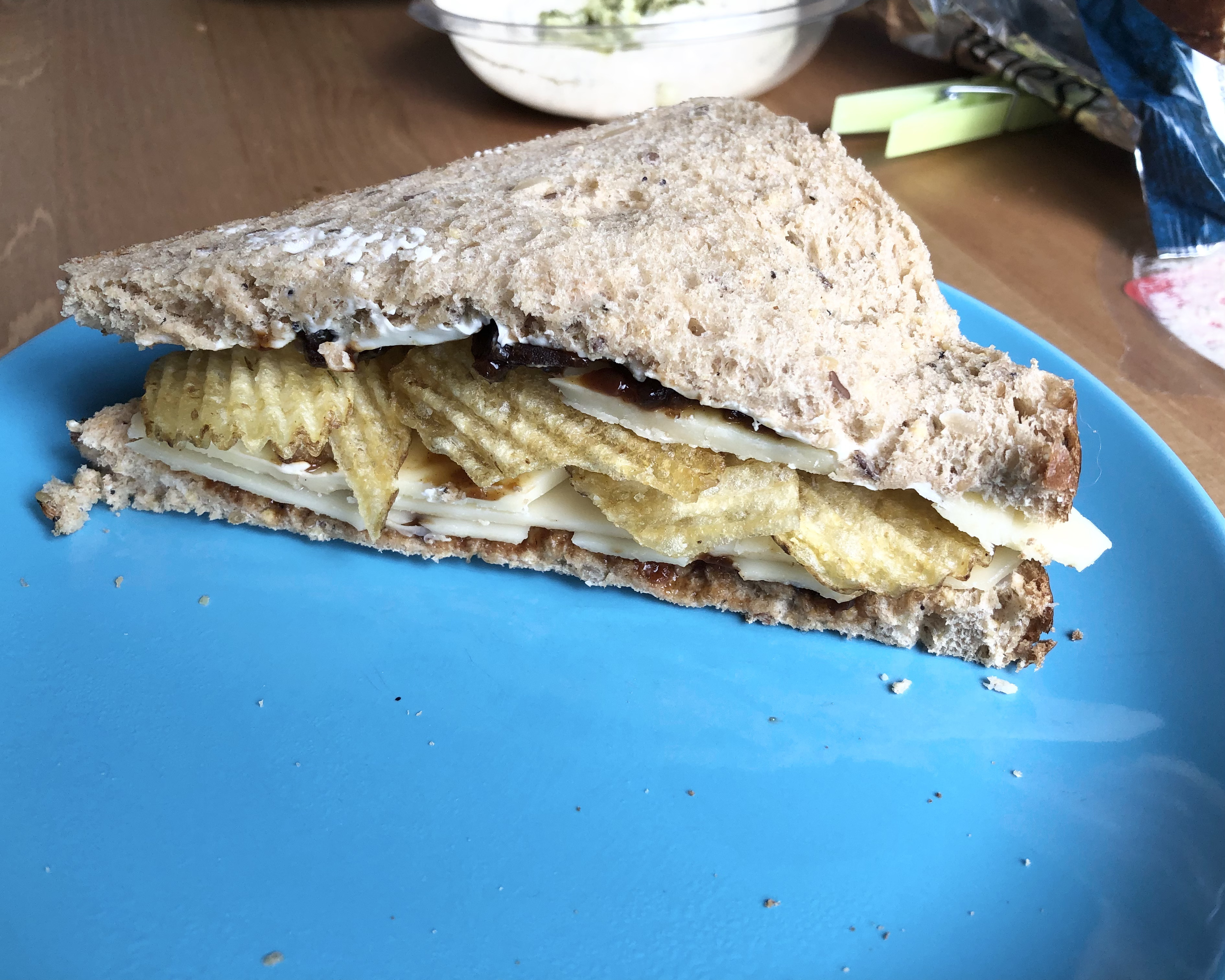 This is good but I think it needs to be squashed a bit so the crisps are more broken up, thus becoming more of the sarnie rather than a crunchy added side if you know what I mean.