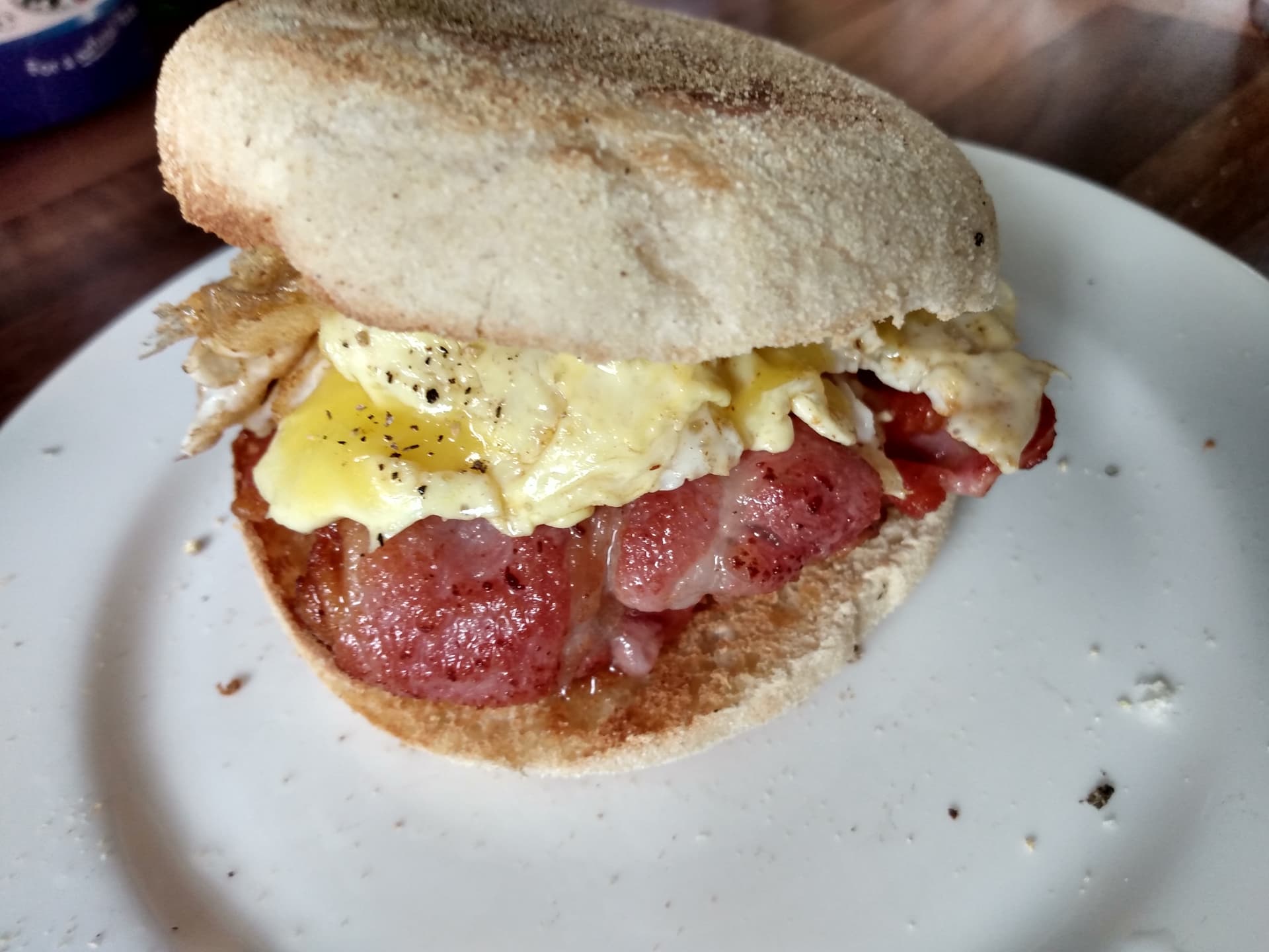 Got some of those thick oven bottom muffins too. Going to cut a bean can in half and use it to shape the egg/sausages