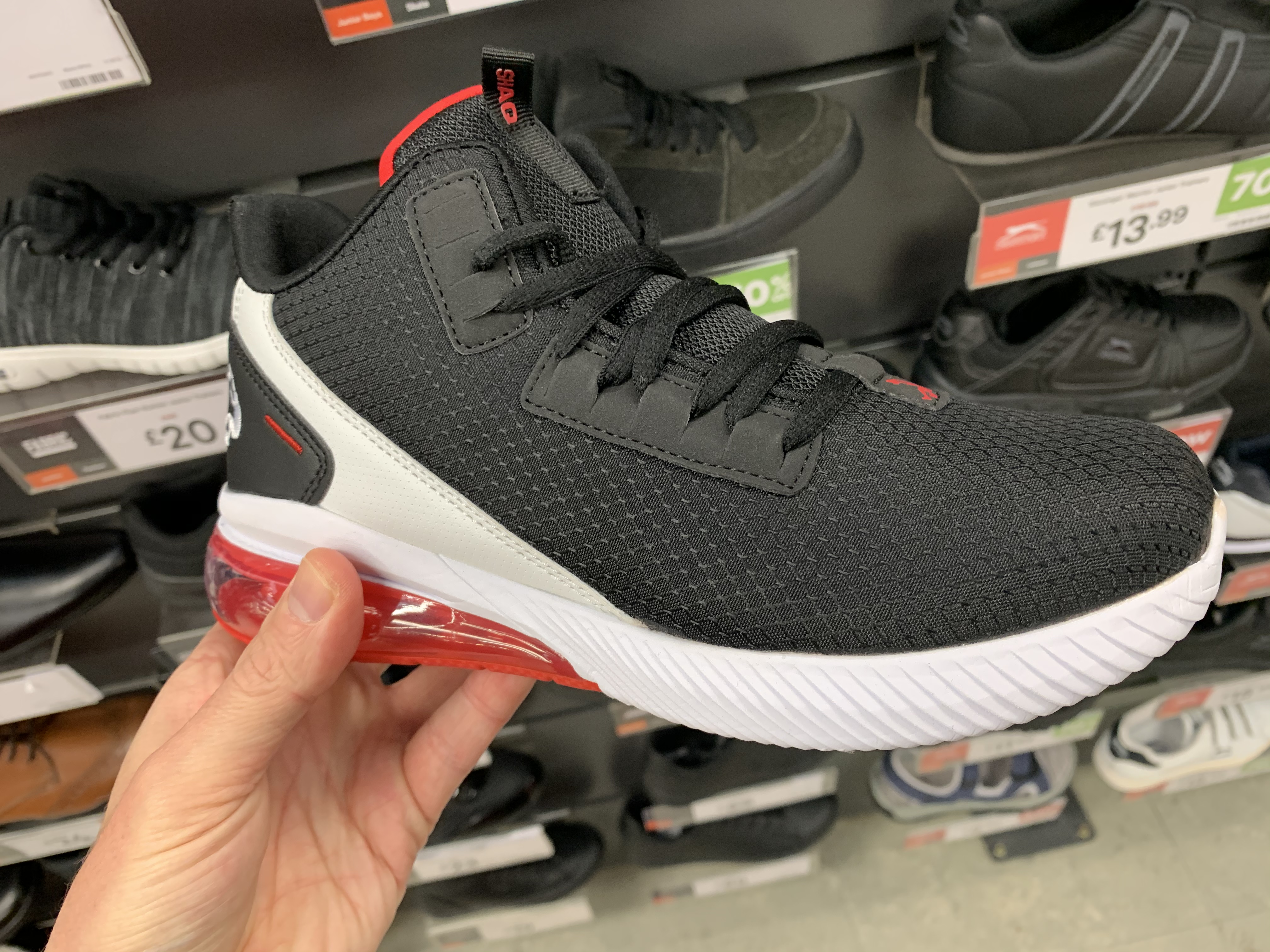I was in Sports Direct today, waiting for my wife to come out of somewhere else and saw these stunningly original Shaq joints. Stoked for Shaq getting his own brand.