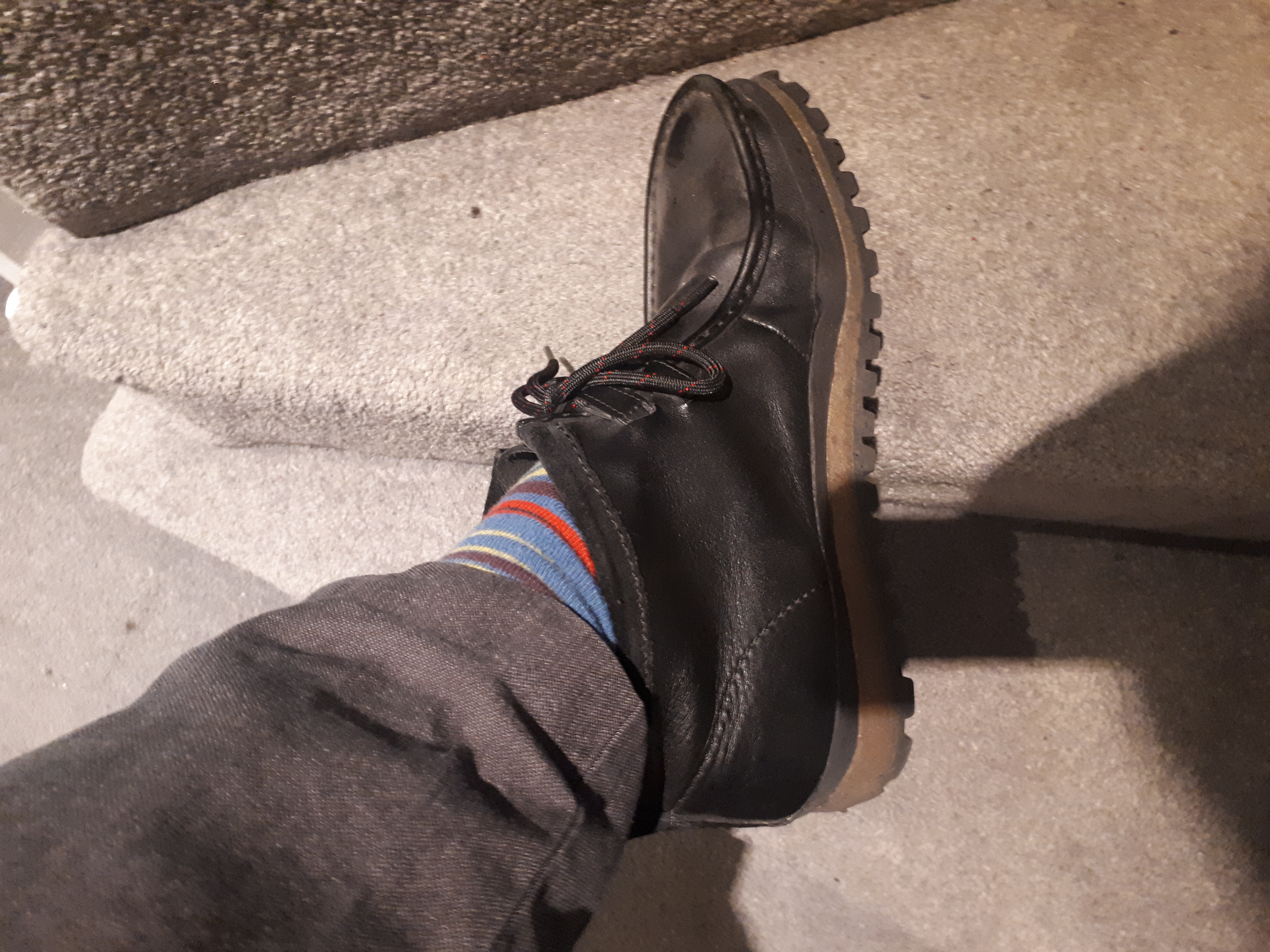 I wore these to work today, a few years back Clarks did a leather wallabee with a proper chunky sole suitable for wet UK weather. They only seemed to do them for 1 or 2 seasons though as I wanted to get a new pair and they don’t appear to make them anymore