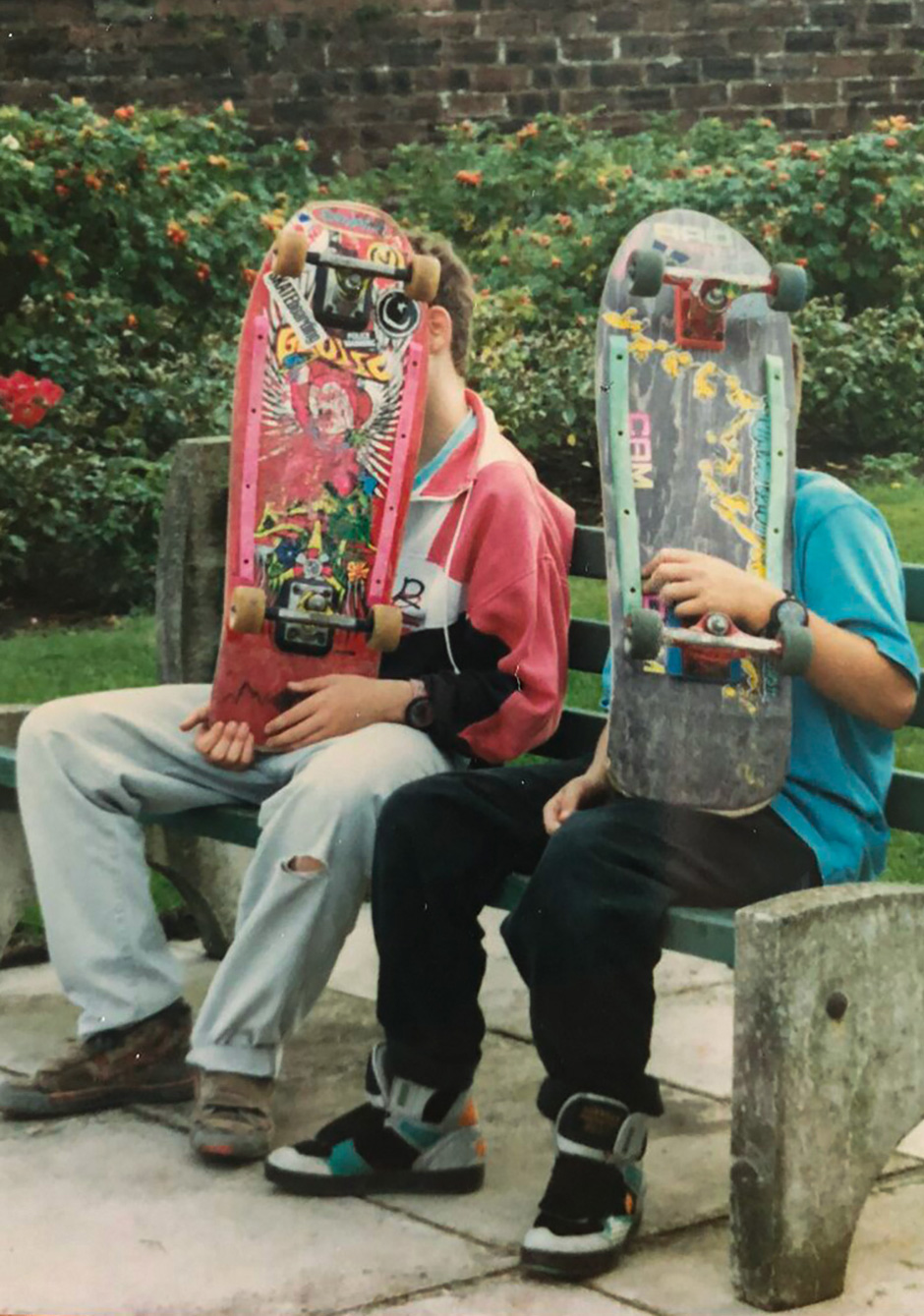 Me on the left here, with another pair of third-or-fourth-choice Airwalk. Canvas grey ‘Heartburn’, with the lacesaver. As is clear, my mate got all the good shit.