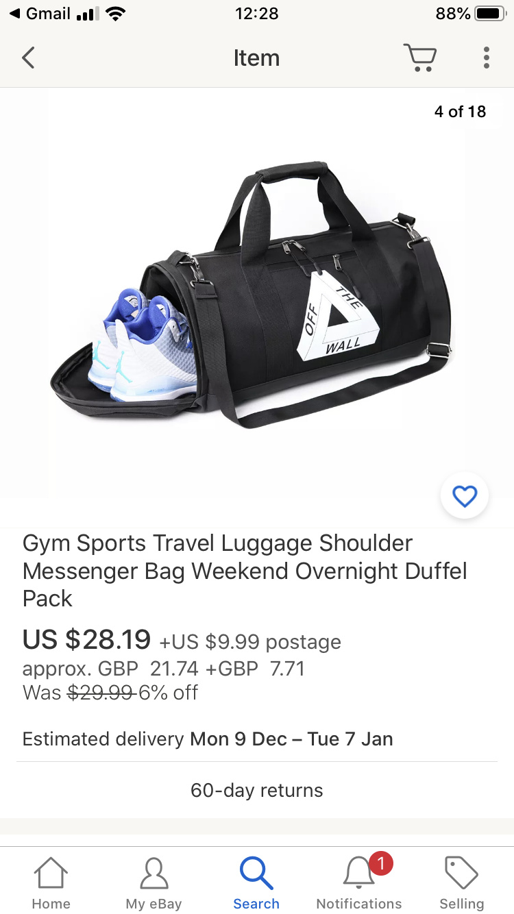 Supreme-style bag with embroidery and red tags, screened Palace logo with Vans slogan on one side, Jordan numbers on the other, and full of adidas. I’m not sure you could fit much more hype into a smaller space