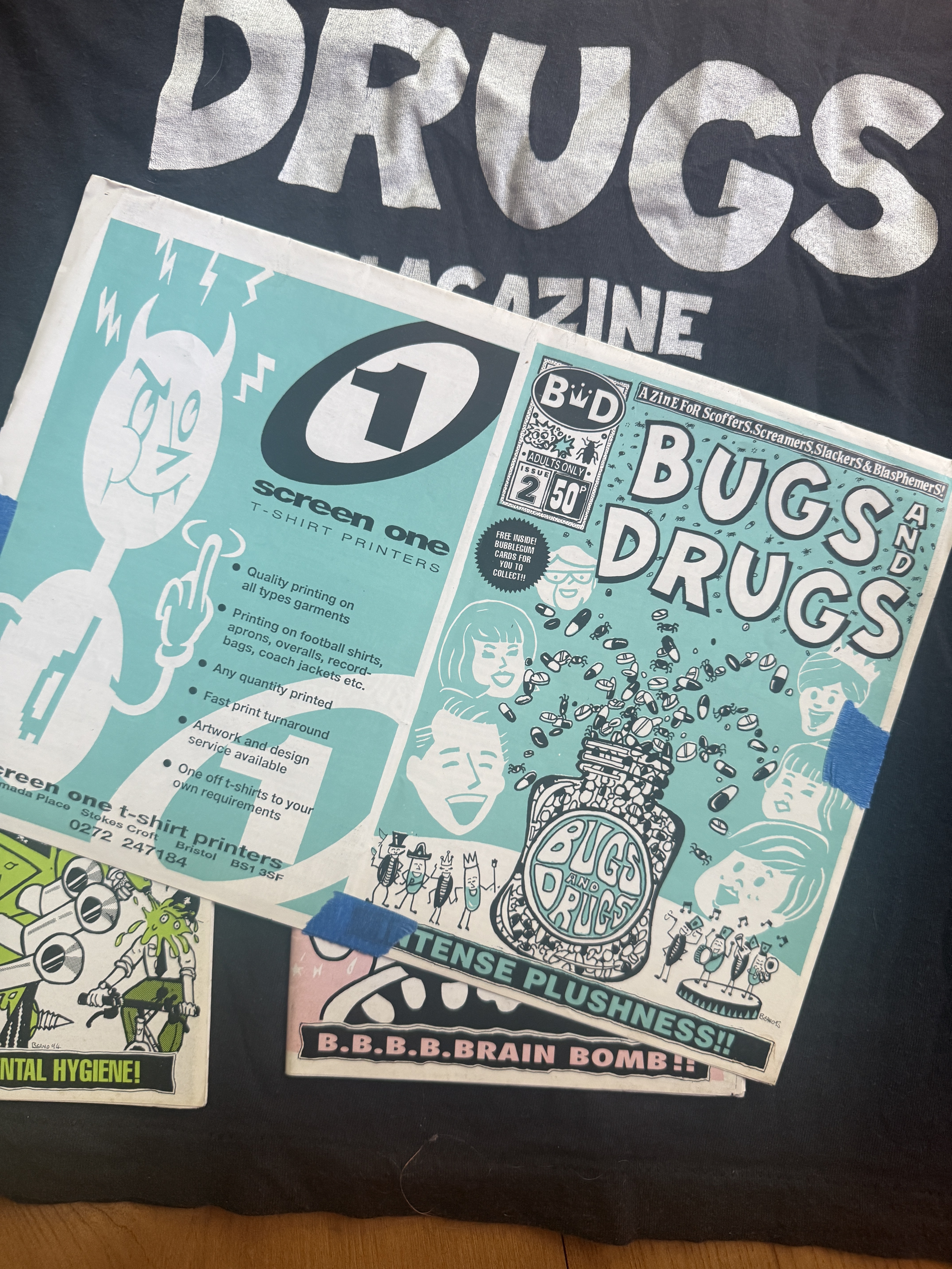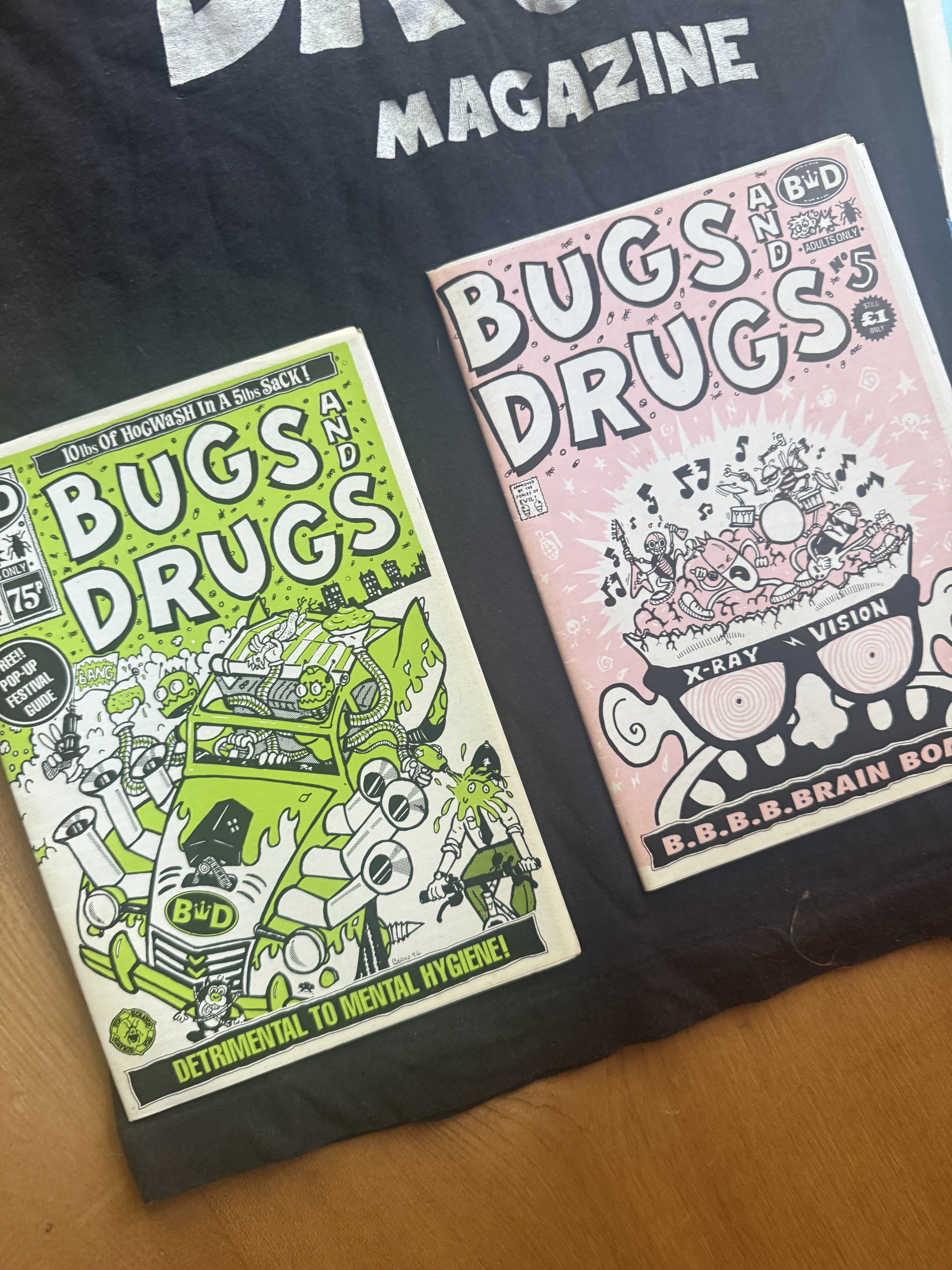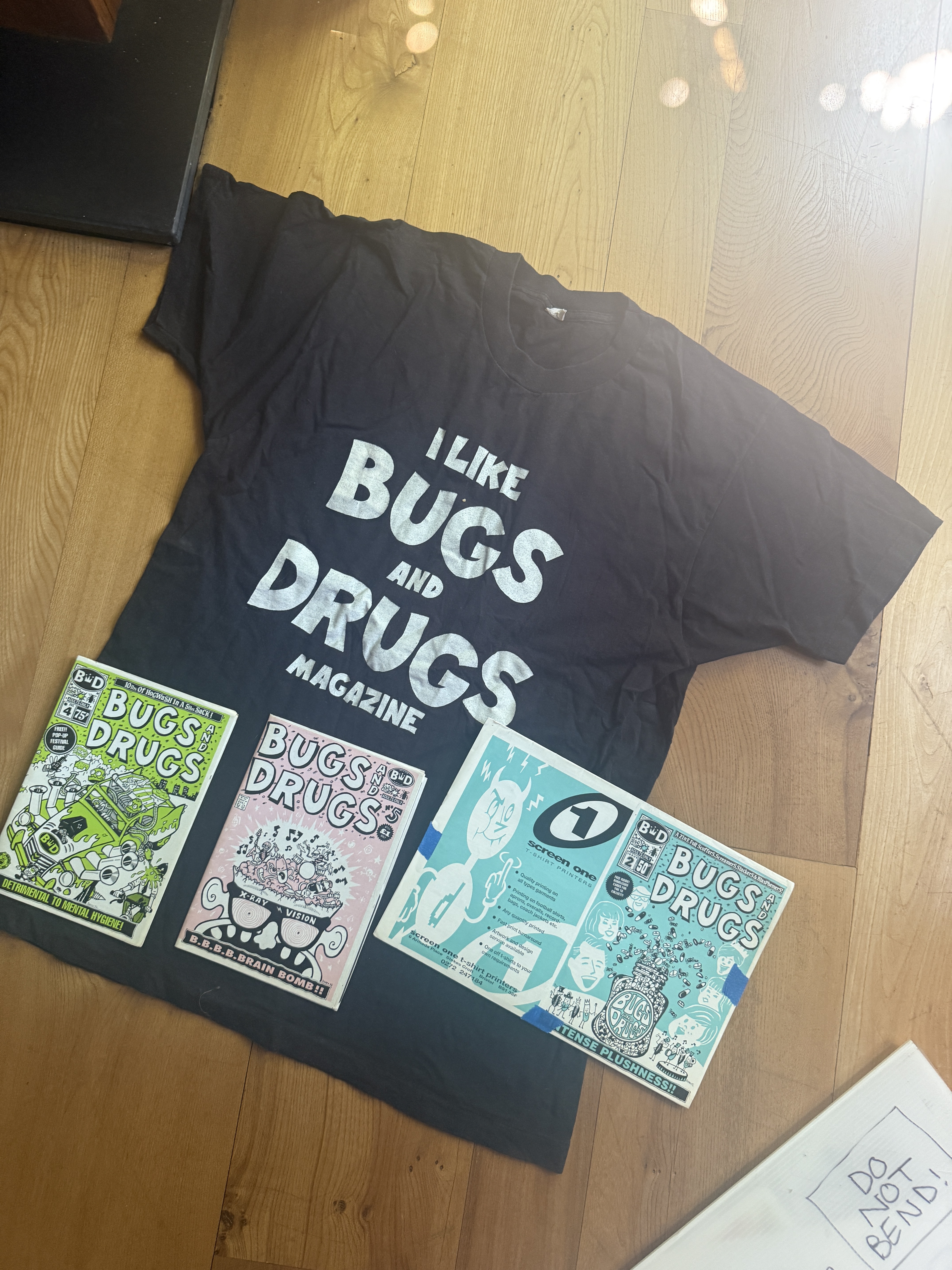 Had to pull this out for Build. Some Bugs and Drugs mags, a printers copy of Bugs and Drugs issue 2 and a Bugs and Drugs tee shirt!