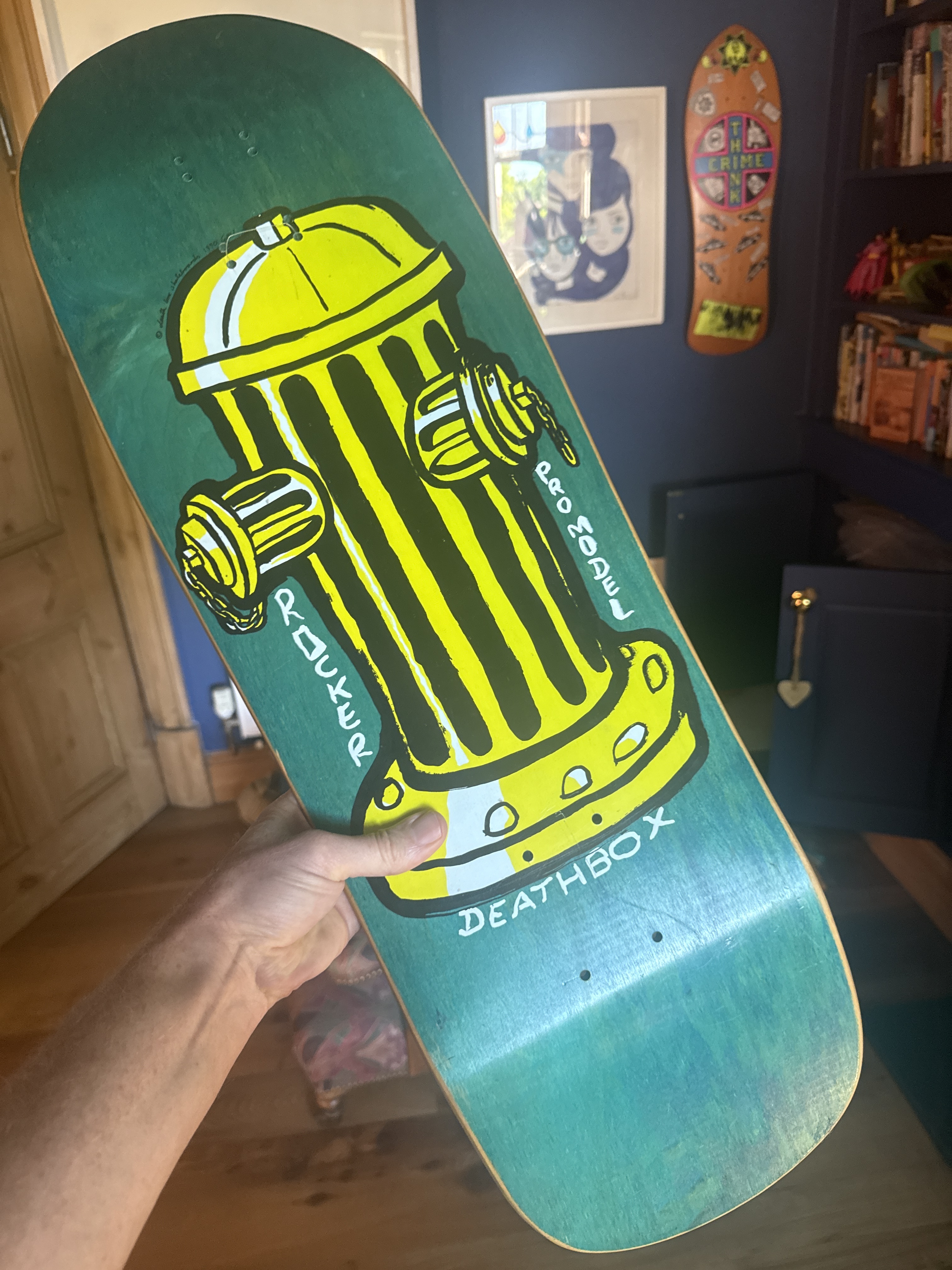 Had the Rocker Hydrant slick and the one even vaguely close indoor skatepark back then was his local vert in Washington (north east, not America). I came off (on the spine mini) his own graphic almost hit him the face, he grabbed my board out of the air and handed me it, felt super embarrassed as a pretty much grom really still back then.