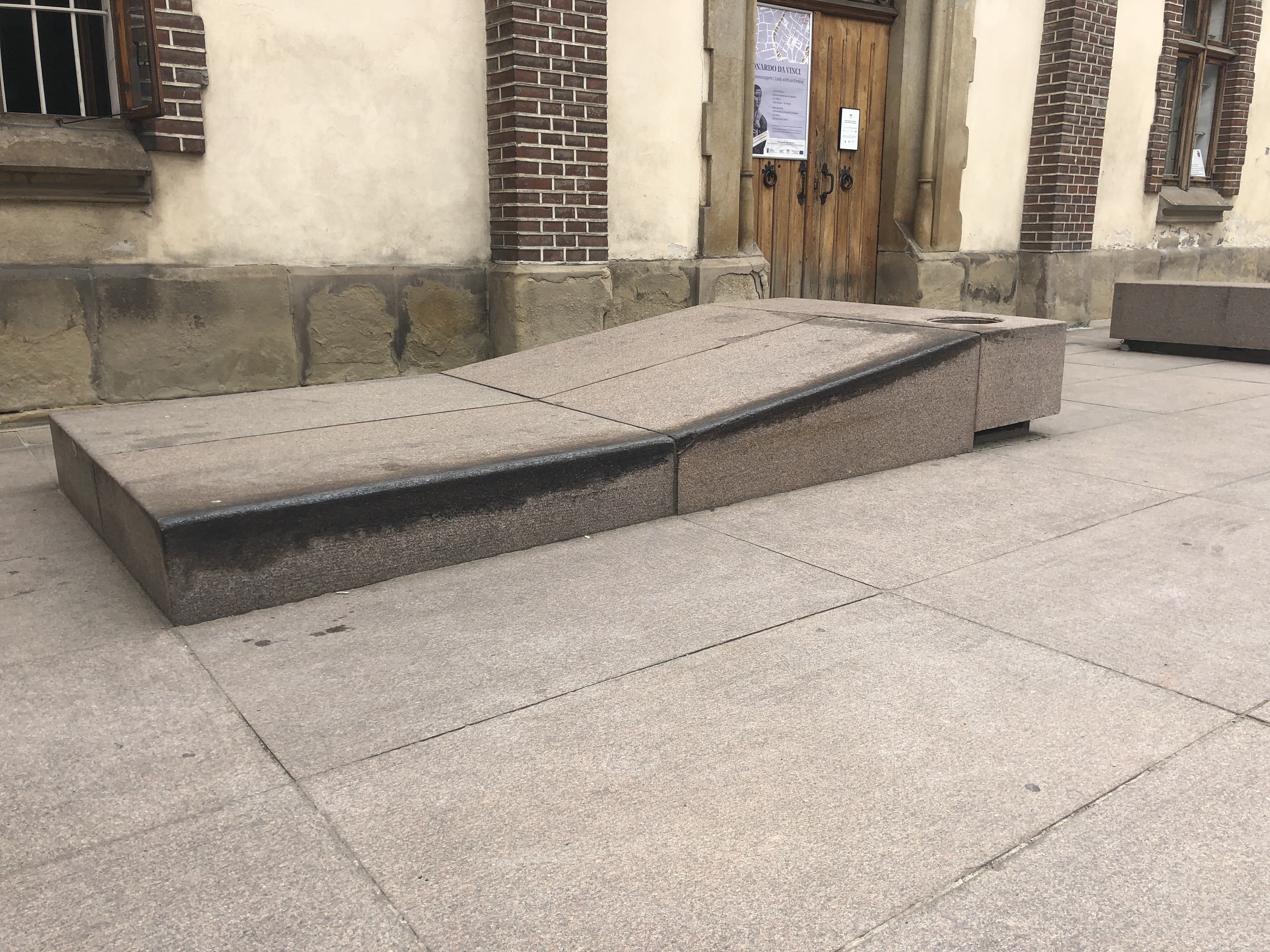 There are some benches there too that are mounted onto large blocks. The block is wider than the benches too leaving enough exposed to skate.