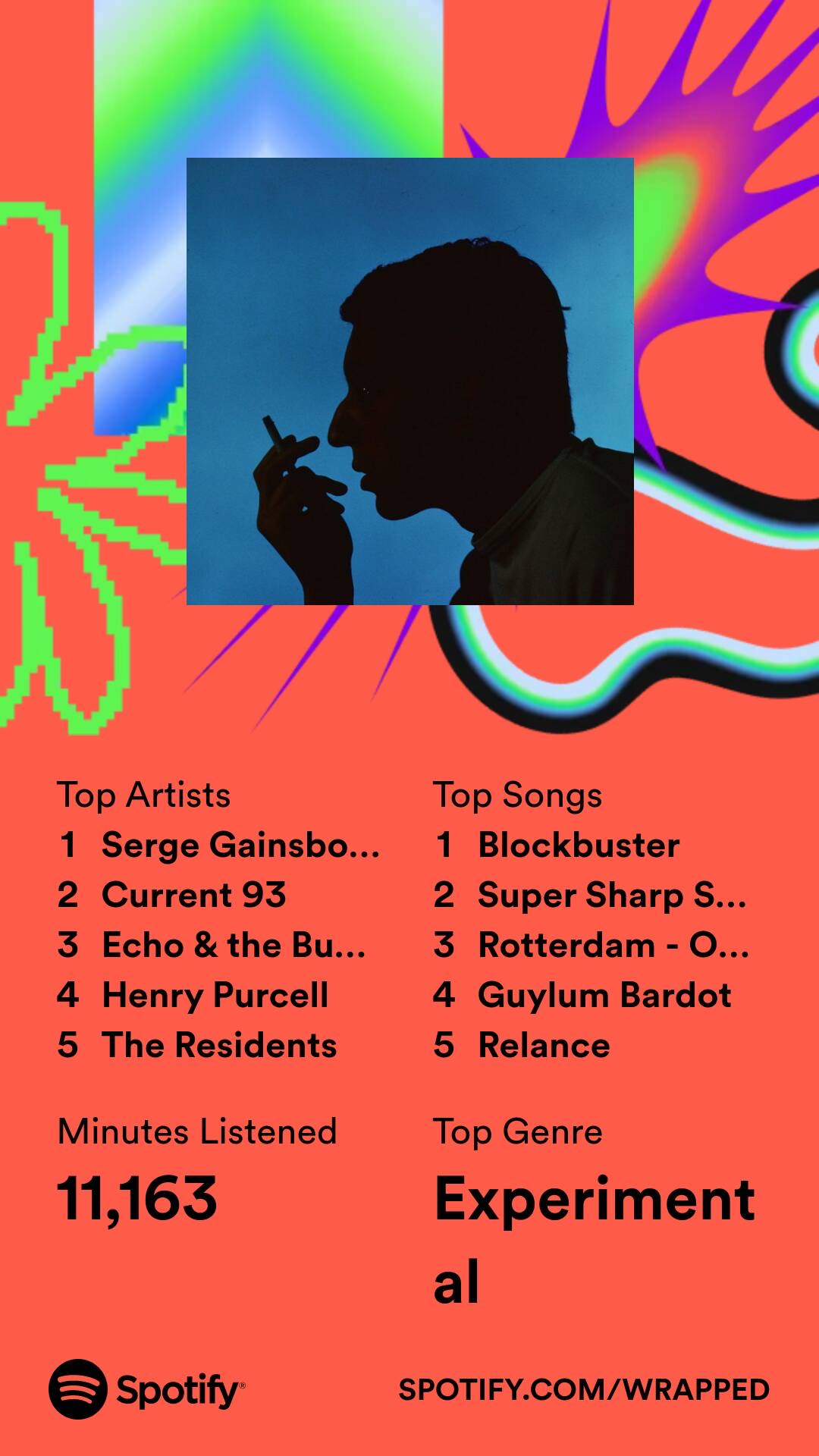 Looking over my list I’ve only listened to like 10 individual artists all year. I cancelled my Spotify premium to save money so have only really listened to music in the lead up to seeing a band live. Outside of my top 5 there’s a bit of Le Savy Fav, bit of Rolo Tomassi, some Blink182 and then one random Kamaal Williams track in at number 93.