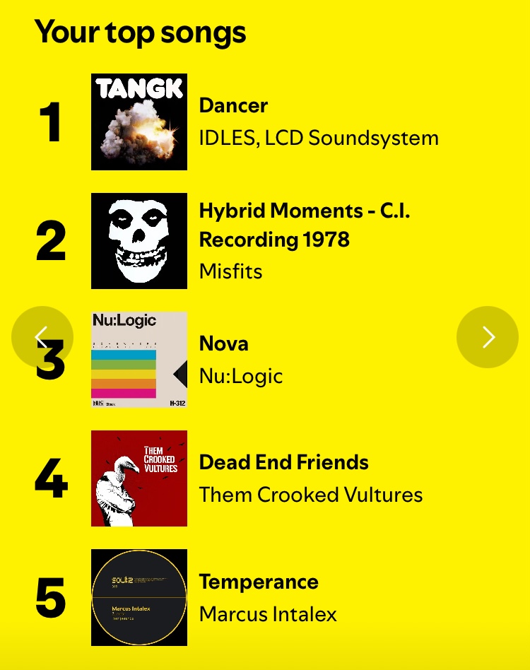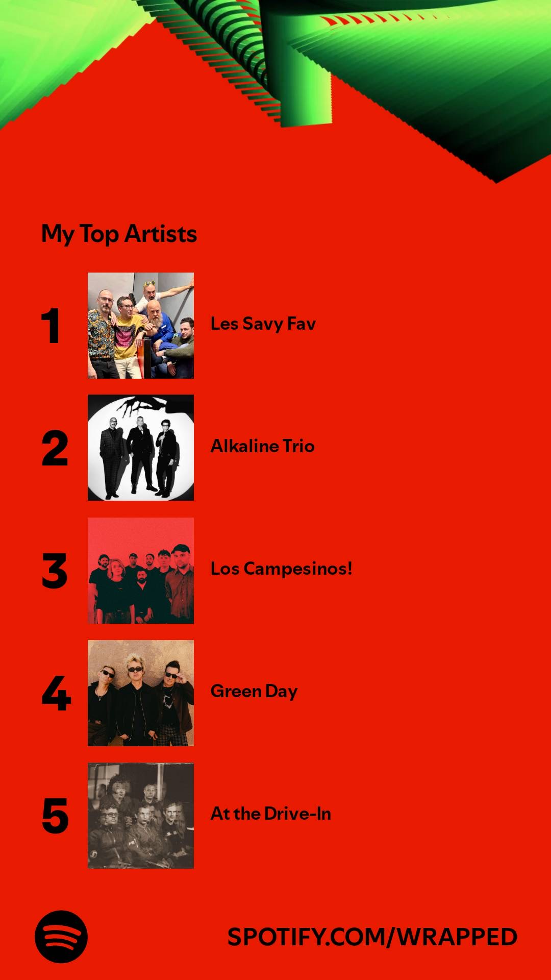 My top 5 songs were all from the new Alkaline Trio album, so yea, lots of overlap haha. Though I was surprised as while I did listen to that album a lot, there’s no Les Savy Fav in my top 5 songs, and only 1 track in my top 10, even though they were my most played artist this year.