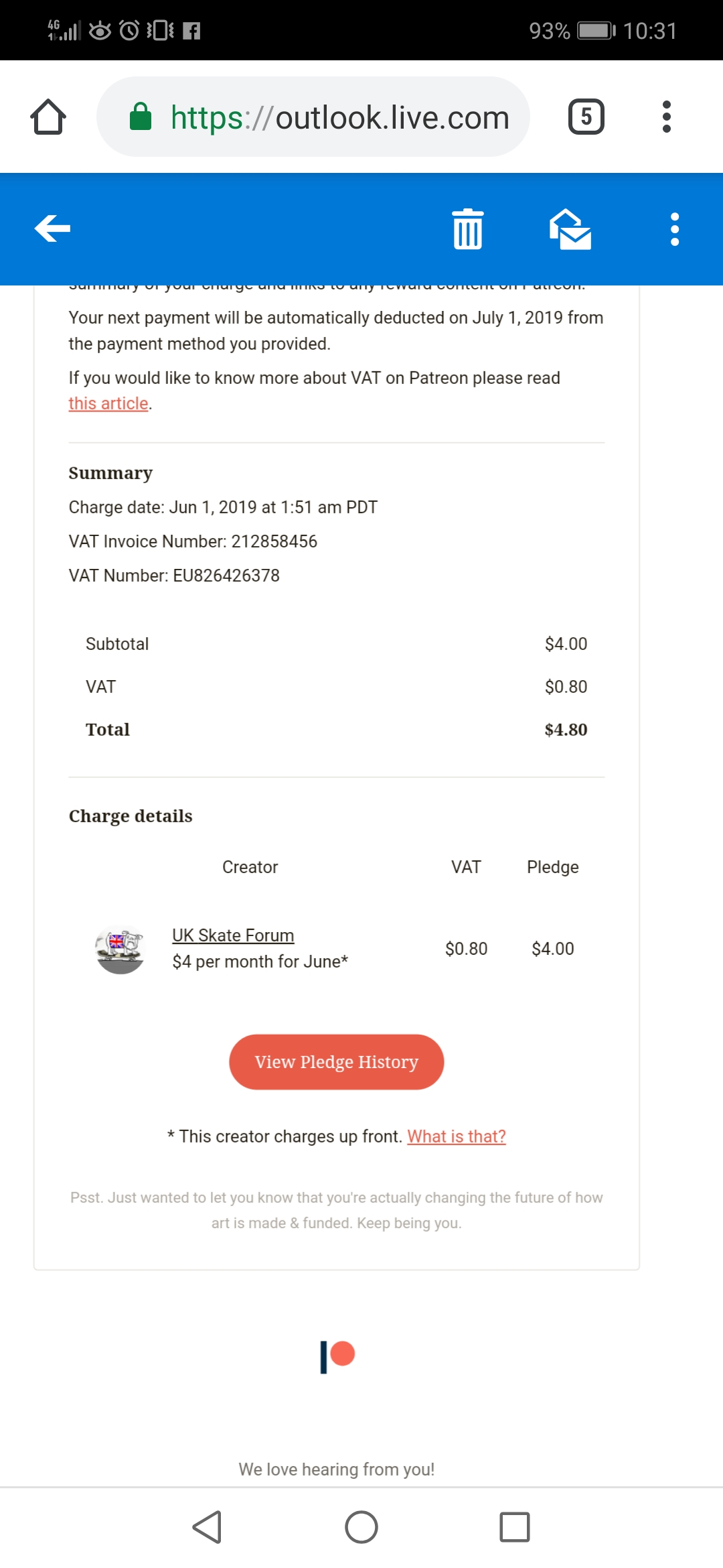I pledged last month, but on the Patreon website it says I have no subscriptions active, but the payment shows in the billing history with a repledge button.