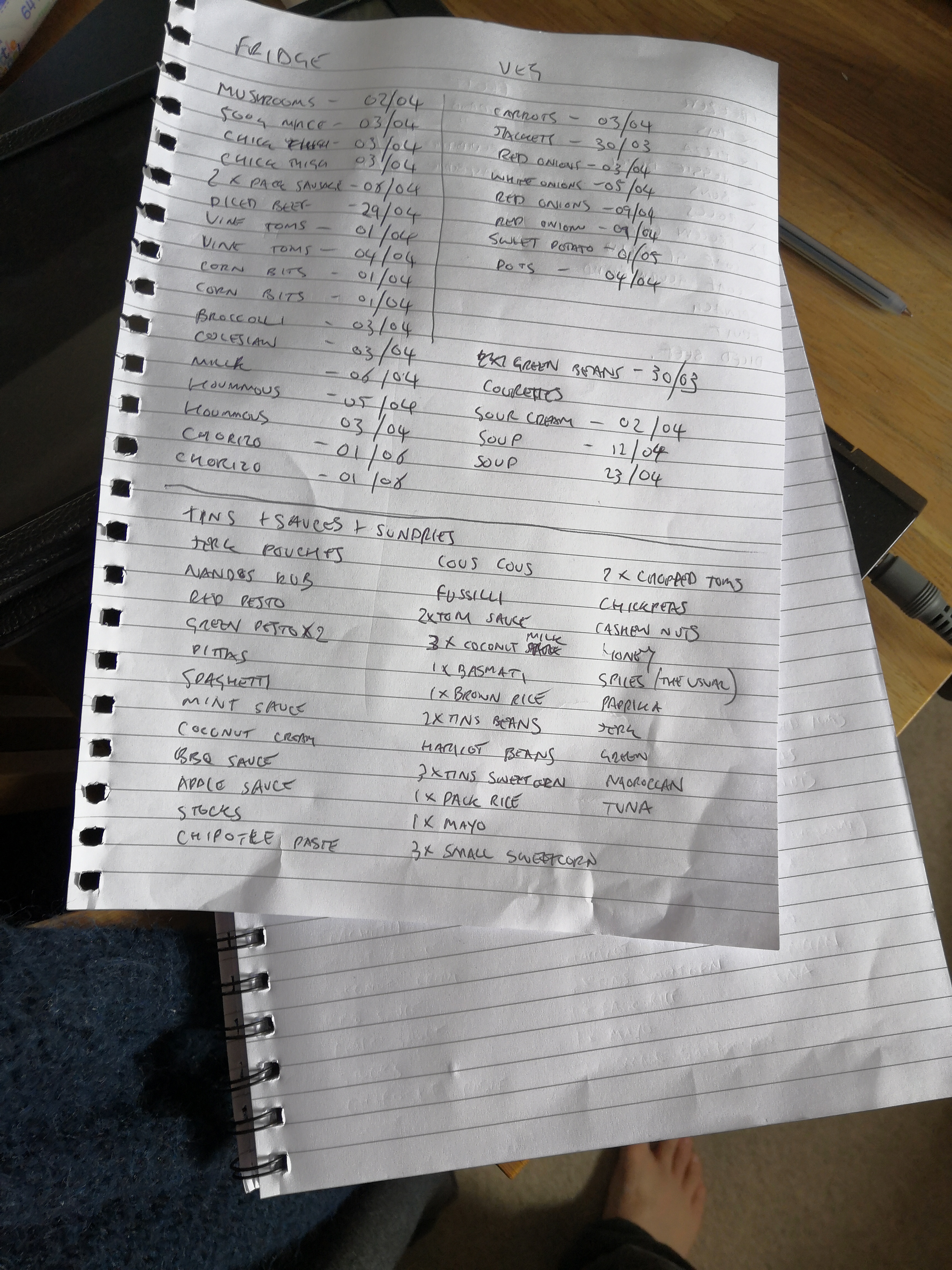 Done a full food audit (items x use by date)