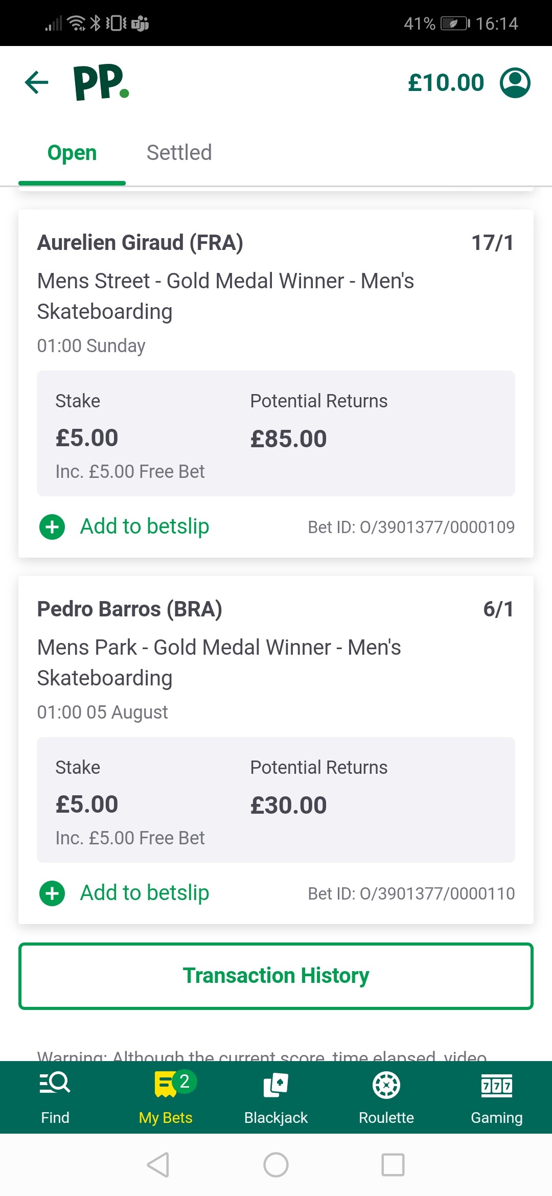 Sky Brown 3/1 on Paddy Power for park gold.
