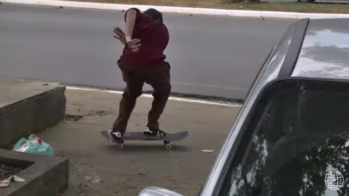 Even before the trick, the way he ran on to his board was all kinds of mongo wrongness. Clip shouldn’t have made it based on that alone.