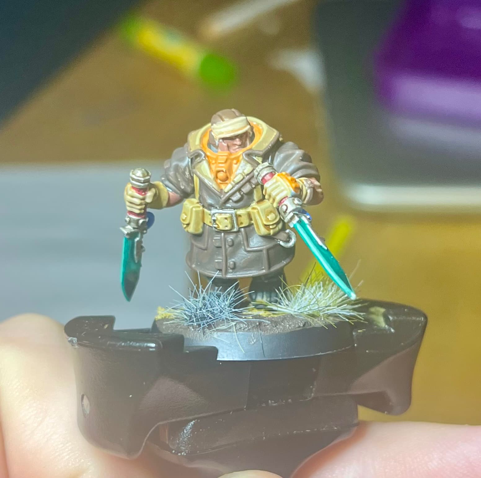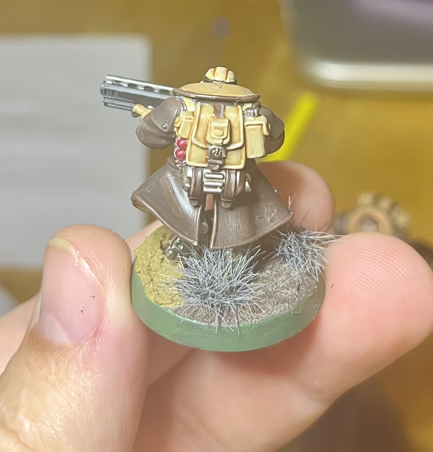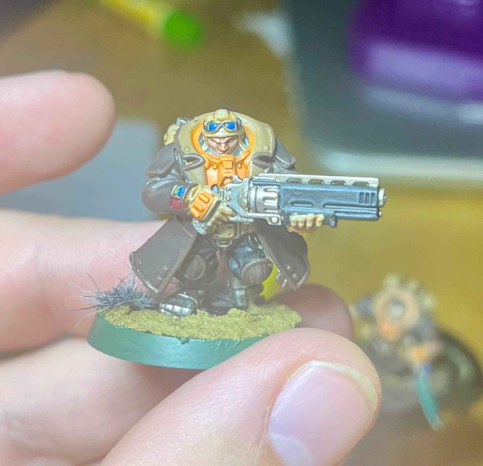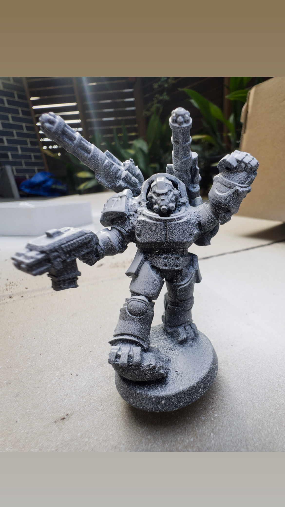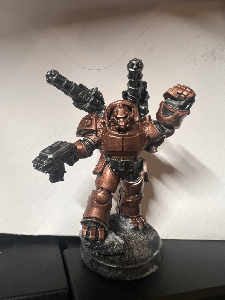This topic inspired me to do some more attempts at mini painting. After a bit of showing mr 5 what Iβd done last year when I tried to pick it up, he wanted to make his own space marine. So we kit bashed some miniβs I had bought for practice into a pretty bulky space marine. Photo above is the blu tack practice run before we found some super glue.