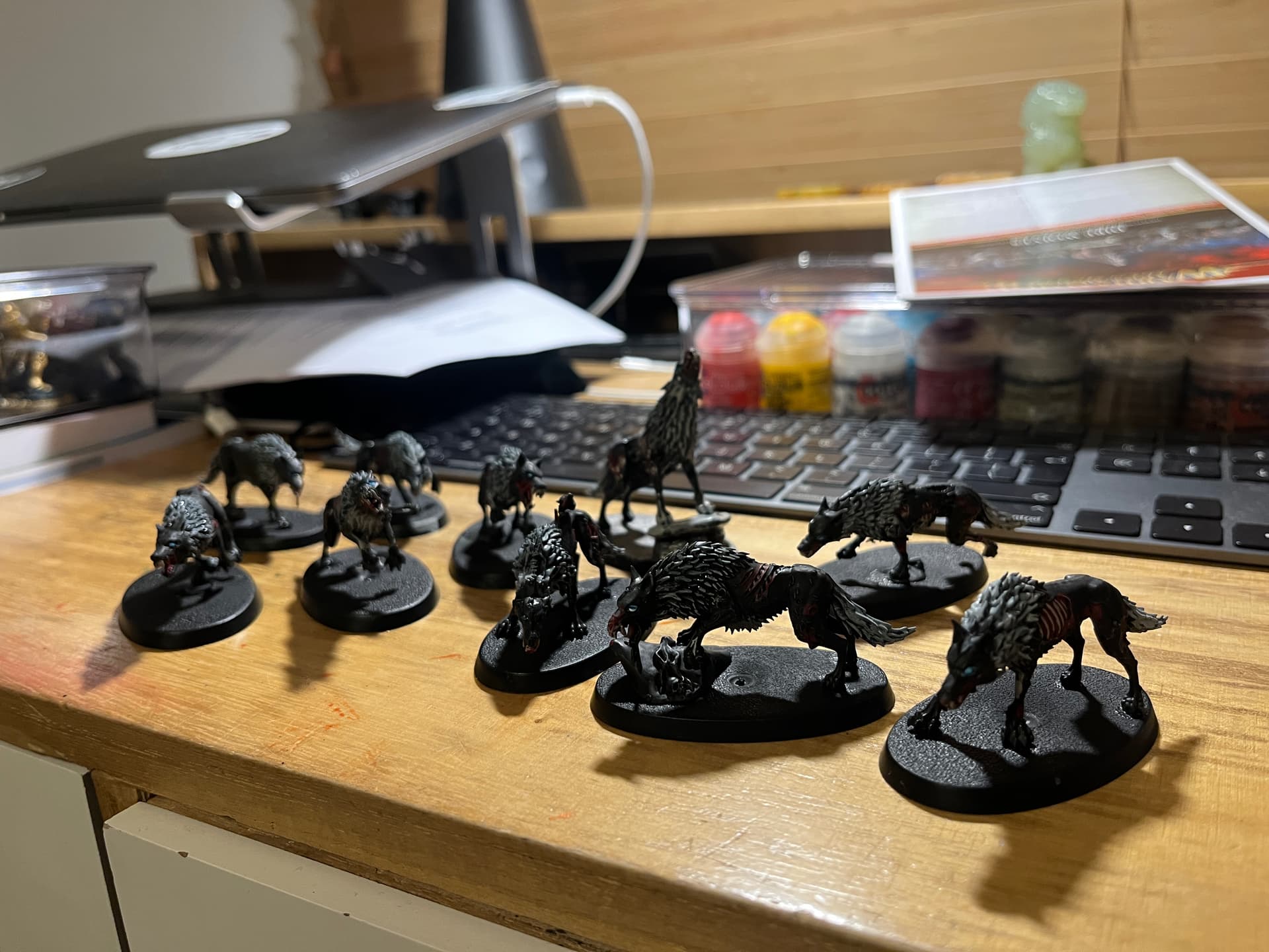 Been productive this morning and finally finished my daughter’s wolf pack. She did the big boss. I did the rest.