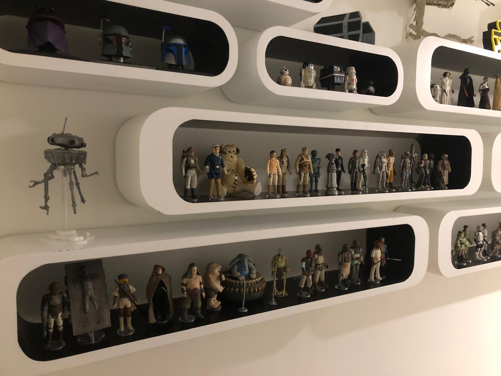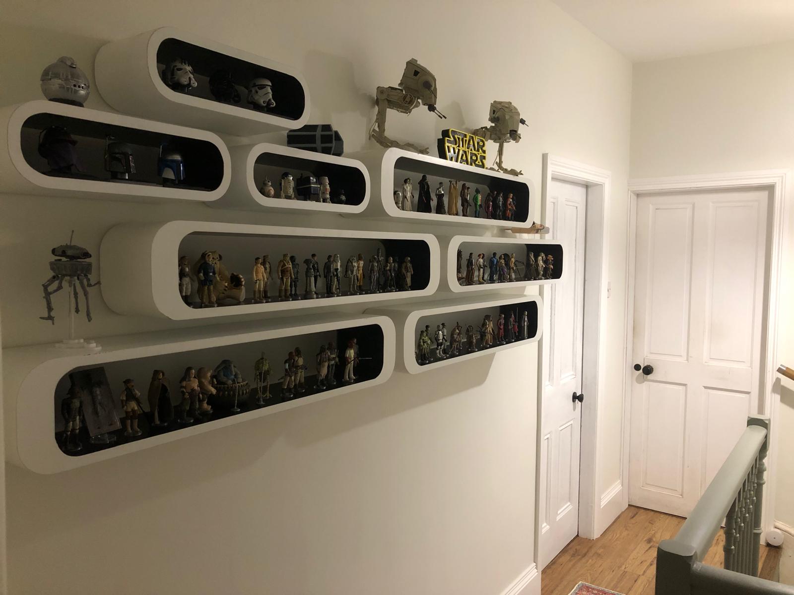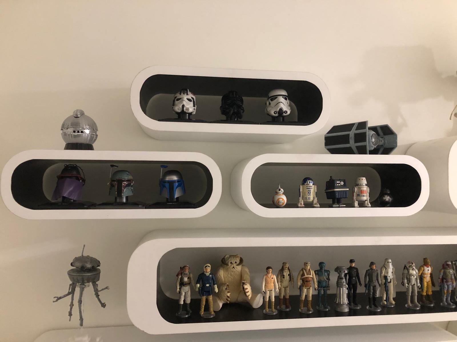 I’ve toyed with doing similar with my transformers collection. They are much bigger though so those particular shelves won’t work. Perfect for Staw wars though.