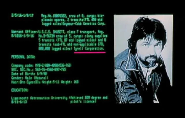 I suppose we’ve not seen north america yet, and Tyrell was taken over by Wallace Corp when it went bankrupt after the wipe. I think Tyrell was in the Alien universe as far back as Aliens