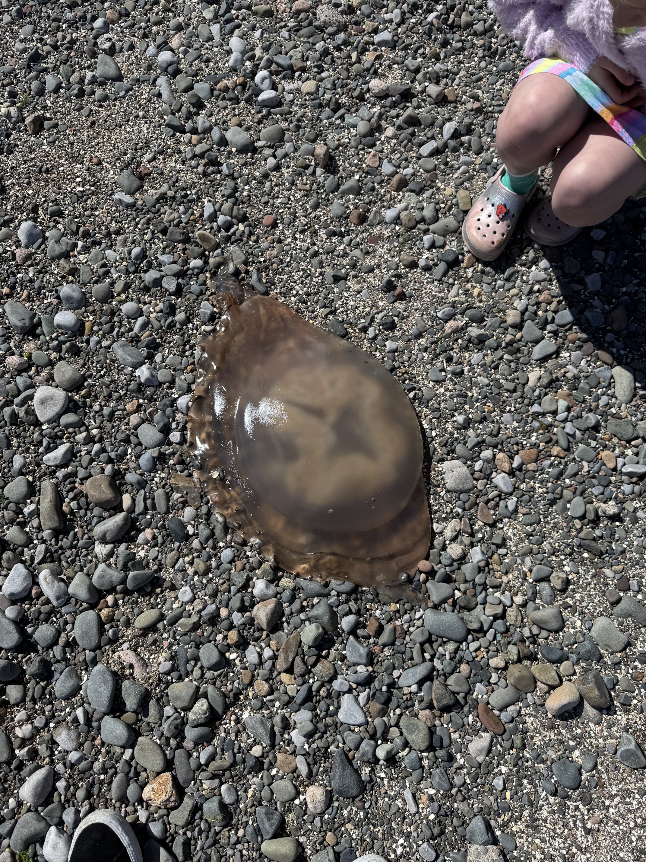 Went for a walk up the beach found a big old jelly fish. And part of a sheep skull which I forgot to photograph.
