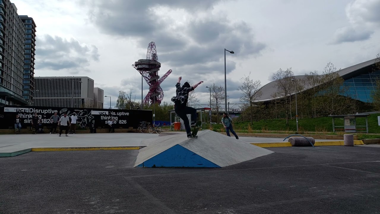 This might be cheating (I was expecting there to be coping built into the obstacle but there wasn’t) but it is grinding a lip so I’ll submit it anyway to help get the ball rolling.