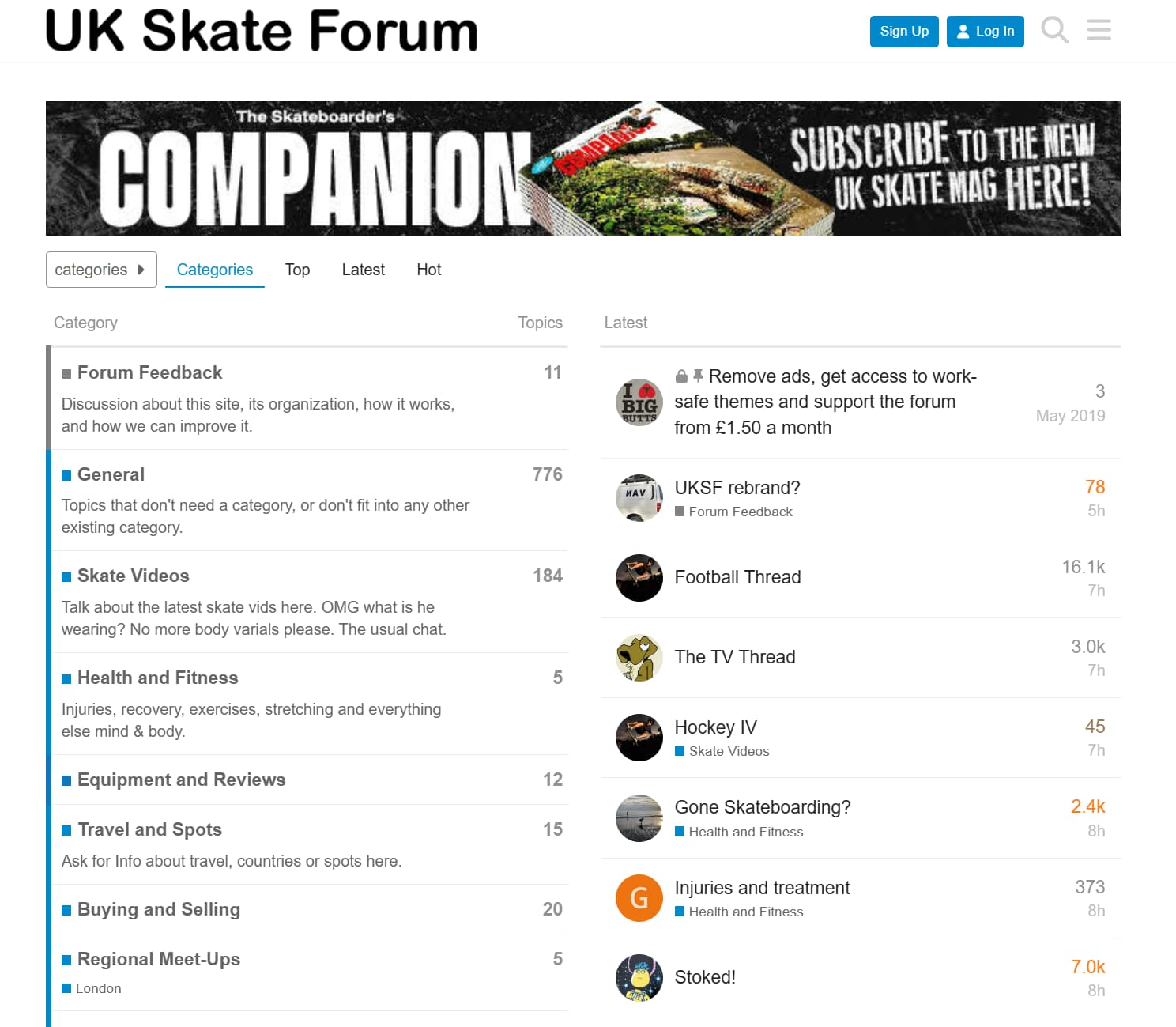 I know you’re resistant to too much categorisation @Mark, but perhaps setting the categories page as the default could be more accessible. Doing that, alongside putting more effort in categorising all topics into a few clear categories could be beneficial to both the regular users and potential new users: Categories - UK Skateboarding Forum